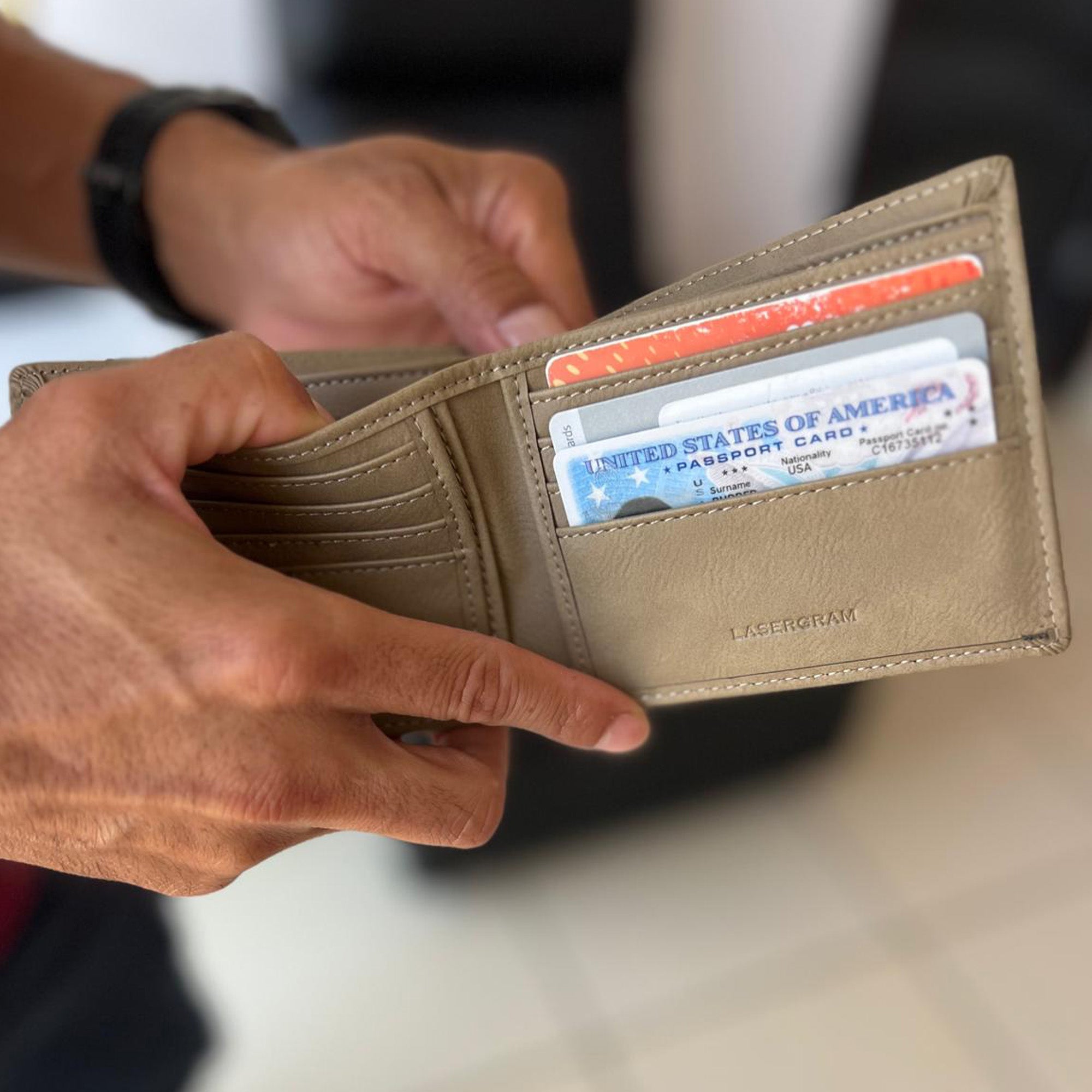 Faux Leather Bi-Fold Wallet, Tyrannosaurus Rex Dinosaur, Personalized Engraving Included