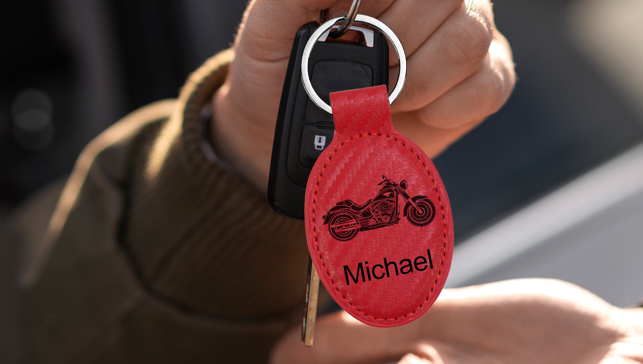 Personalized Faux Leather Oval Shaped Keychains Tired of people taking your keys by mistake?...