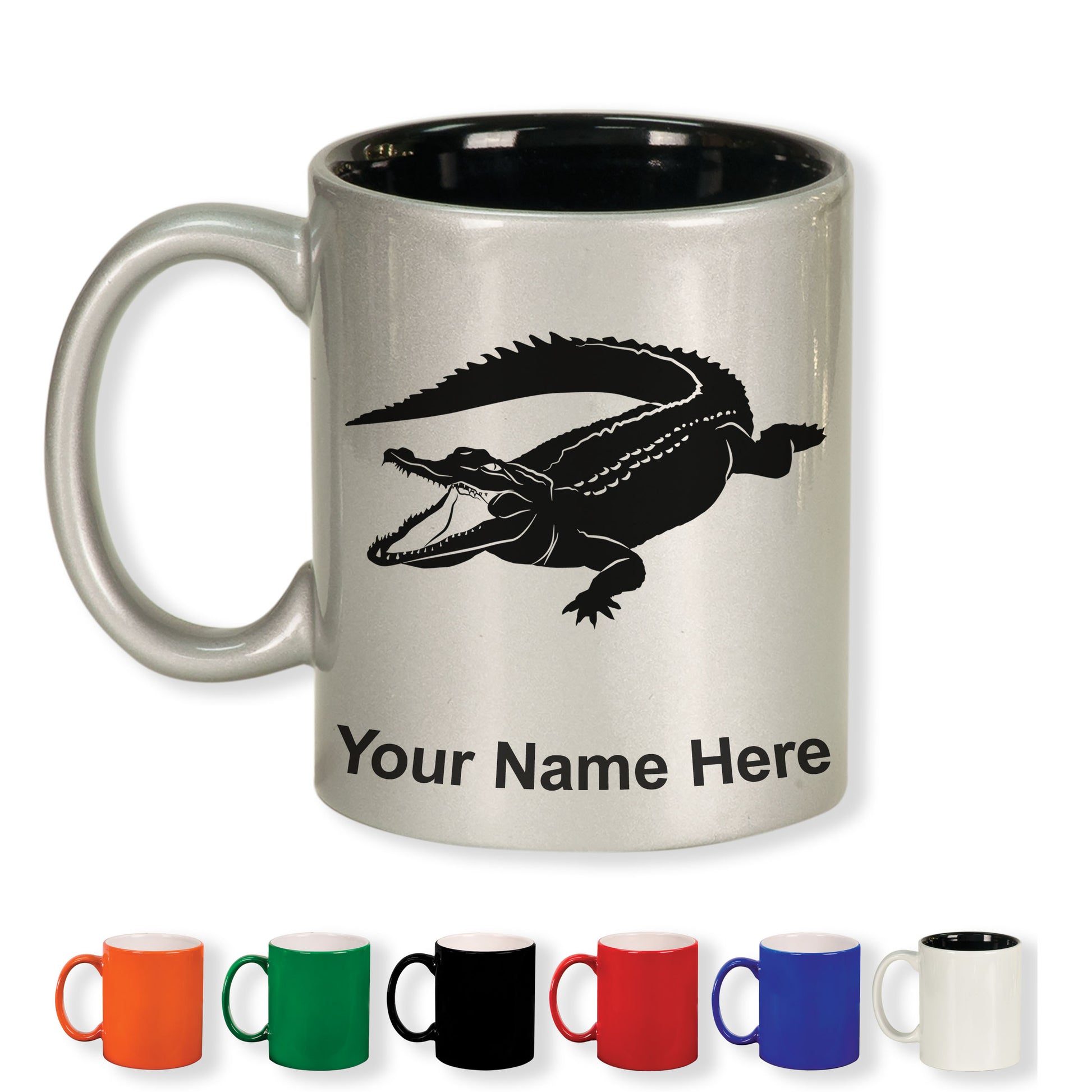11oz Round Ceramic Coffee Mug, Alligator, Personalized Engraving Included