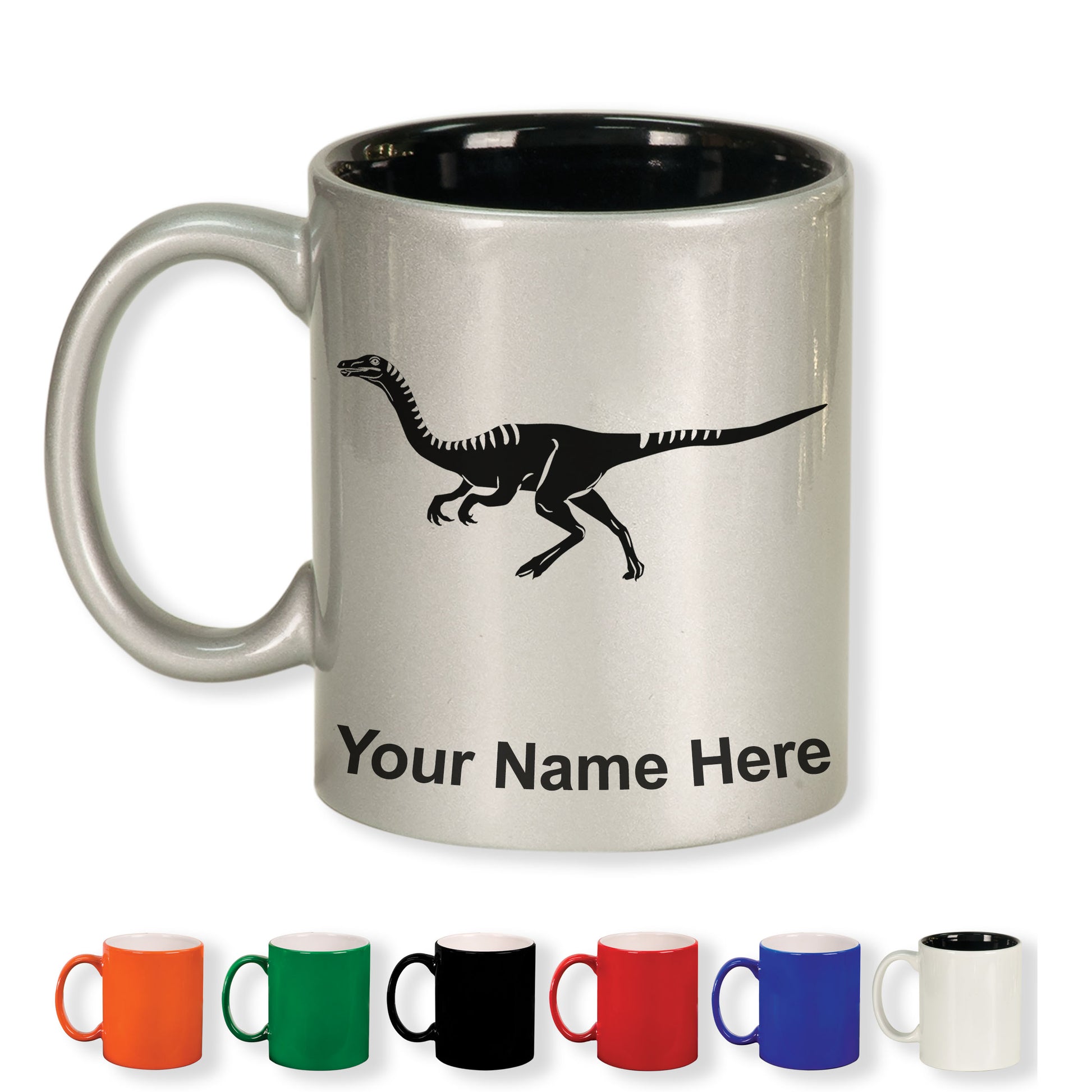 11oz Round Ceramic Coffee Mug, Gallimimus Dinosaur, Personalized Engraving Included