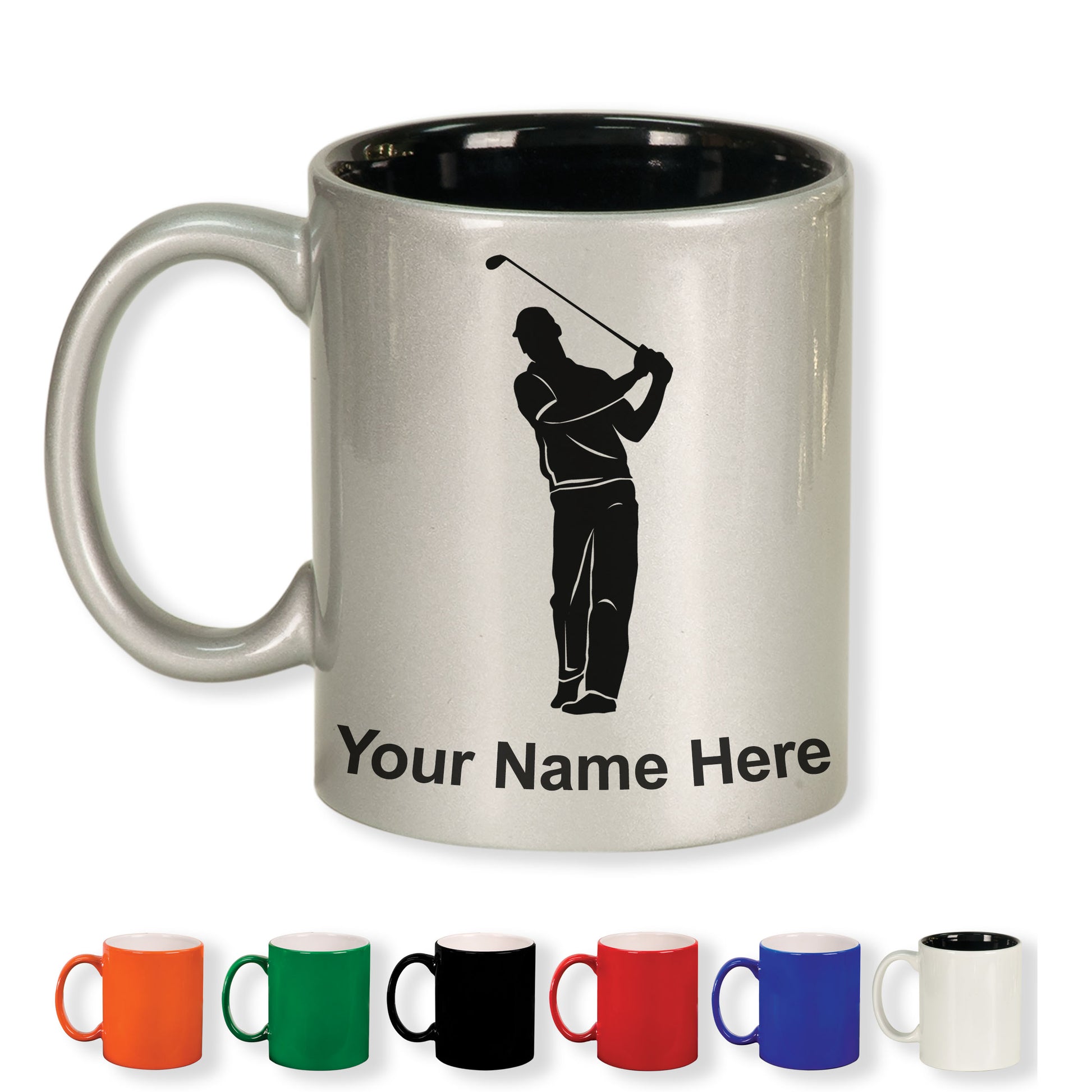 11oz Round Ceramic Coffee Mug, Golfer, Personalized Engraving Included