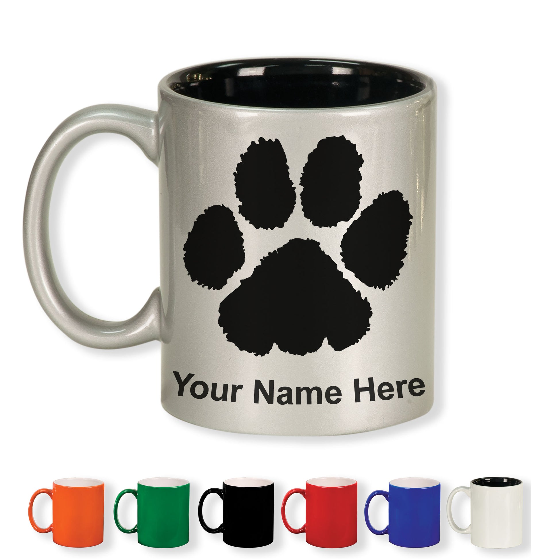 11oz Round Ceramic Coffee Mug, Paw Print, Personalized Engraving Included
