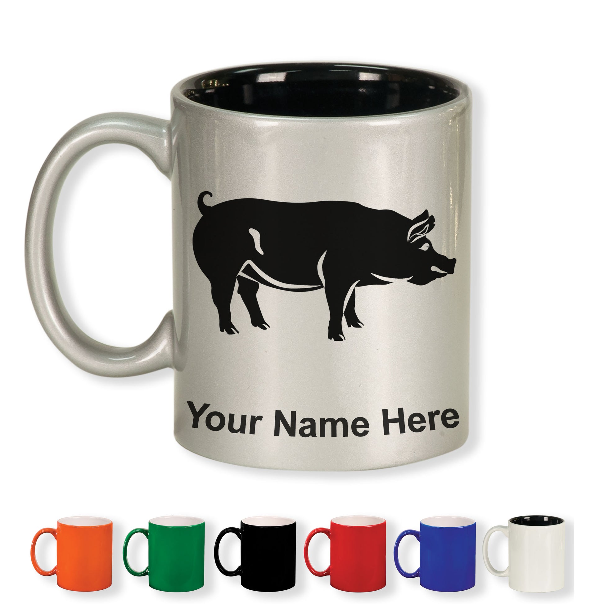 11oz Round Ceramic Coffee Mug, Pig, Personalized Engraving Included