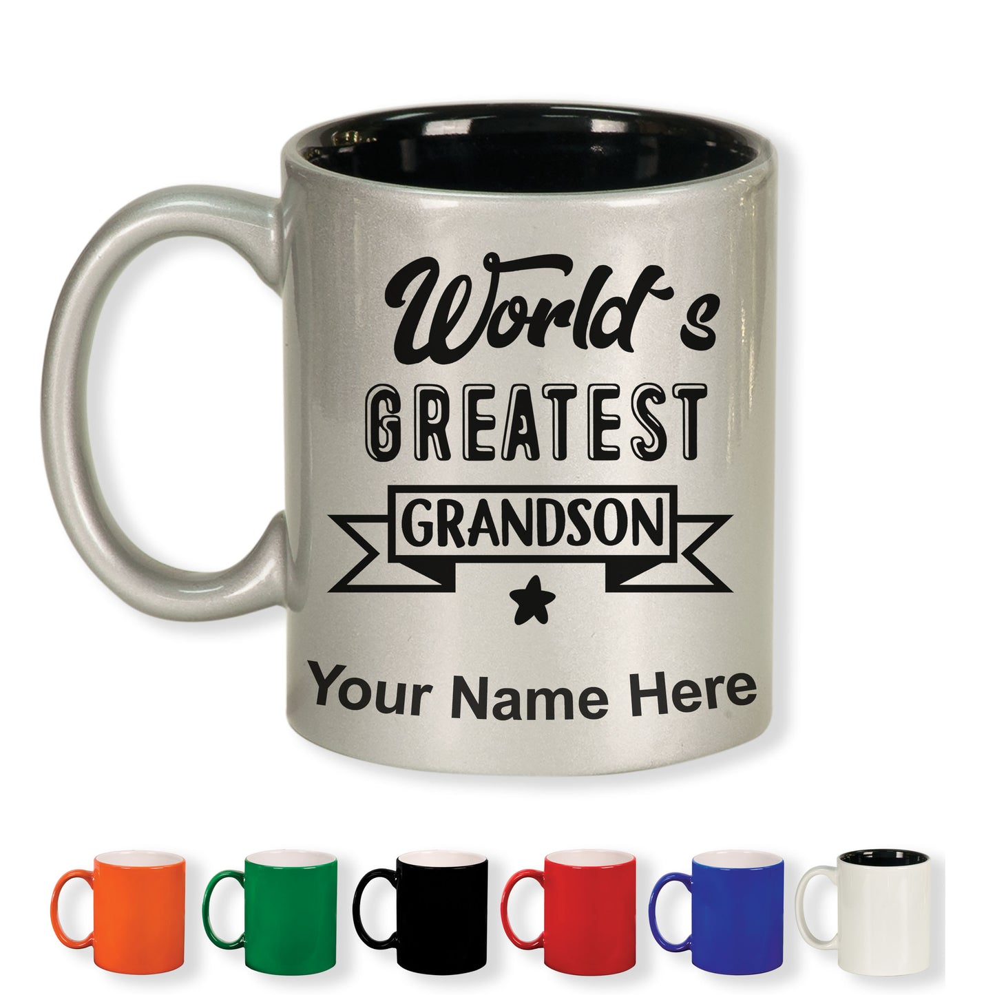 11oz Round Ceramic Coffee Mug, World's Greatest Grandson, Personalized Engraving Included