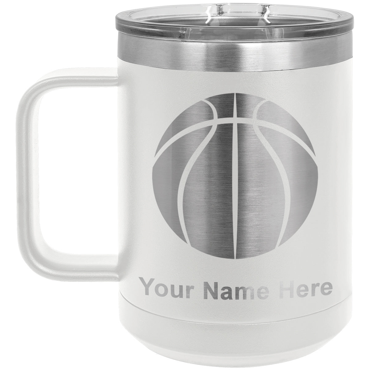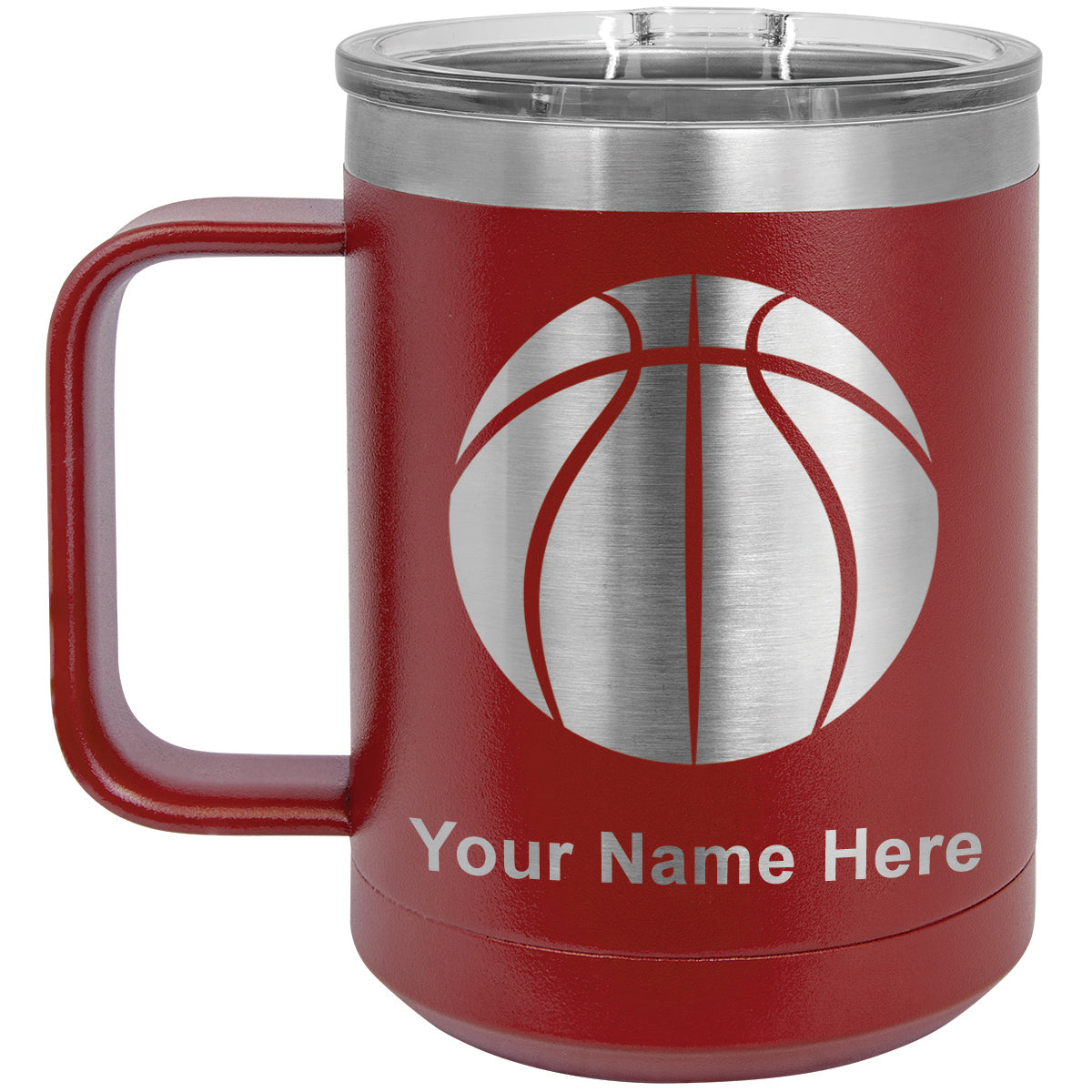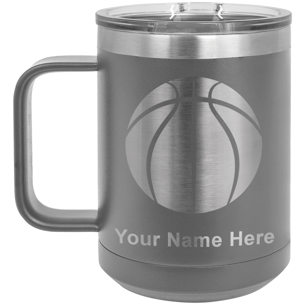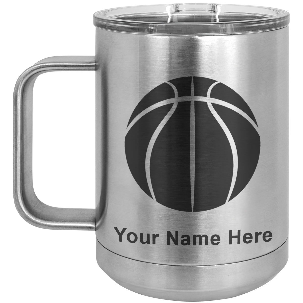 15oz Vacuum Insulated Coffee Mug, Basketball Ball, Personalized Engraving Included