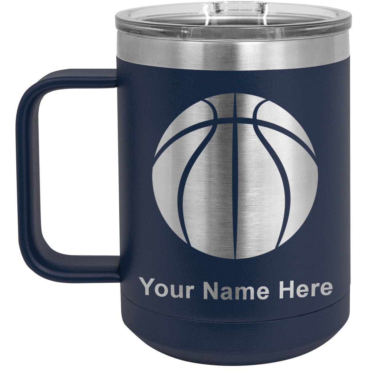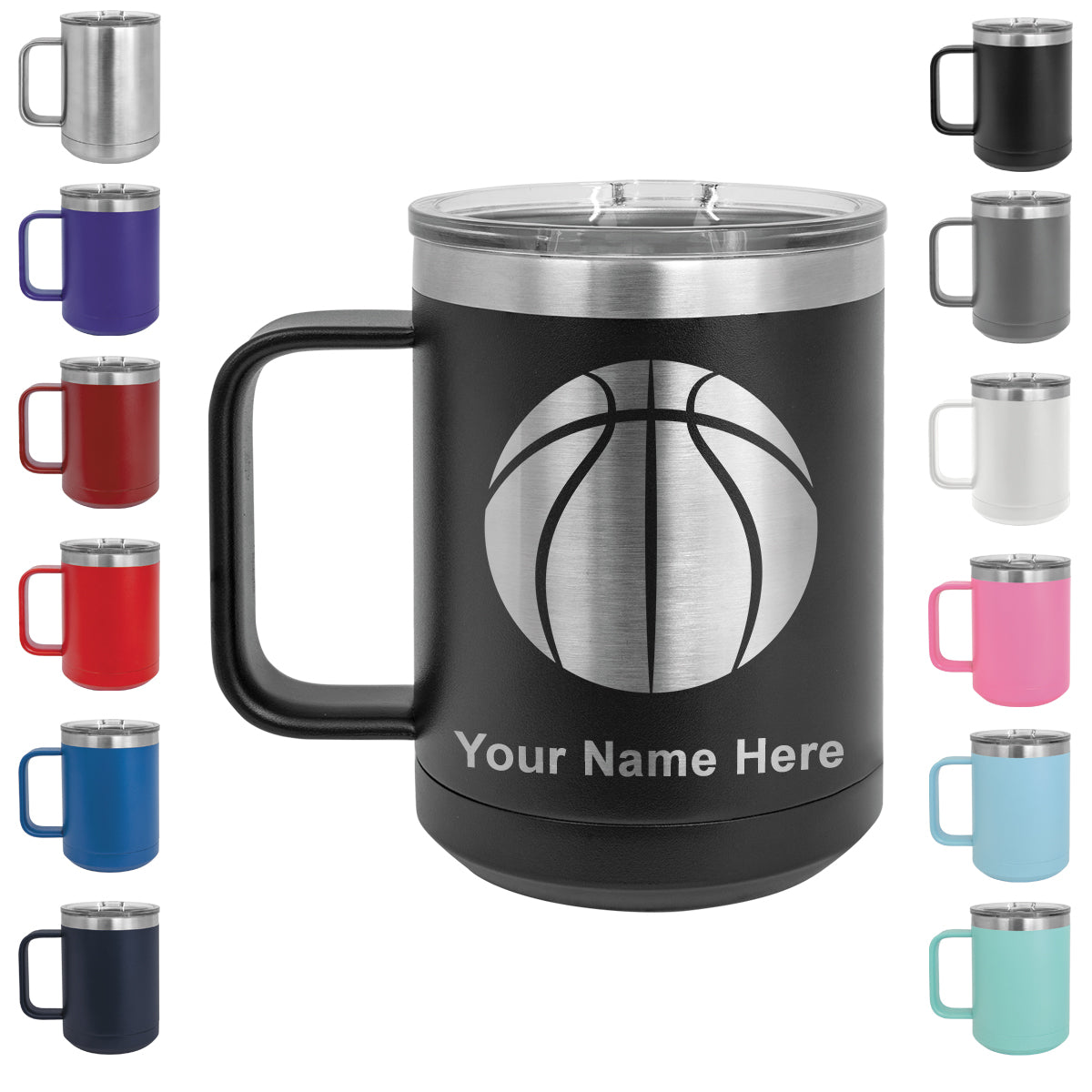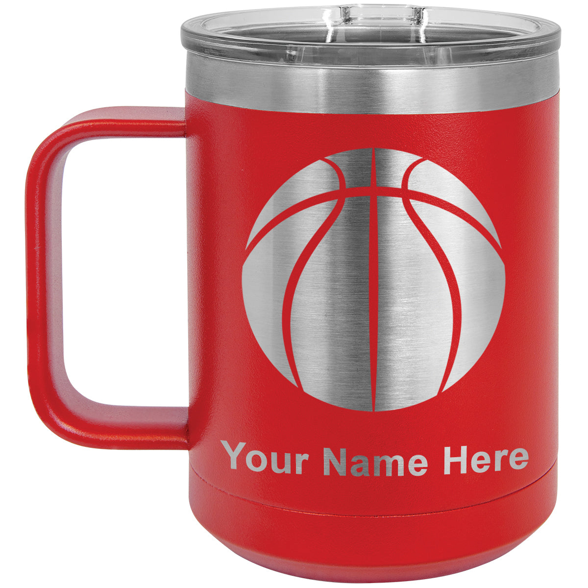15oz Vacuum Insulated Coffee Mug, Basketball Ball, Personalized Engraving Included