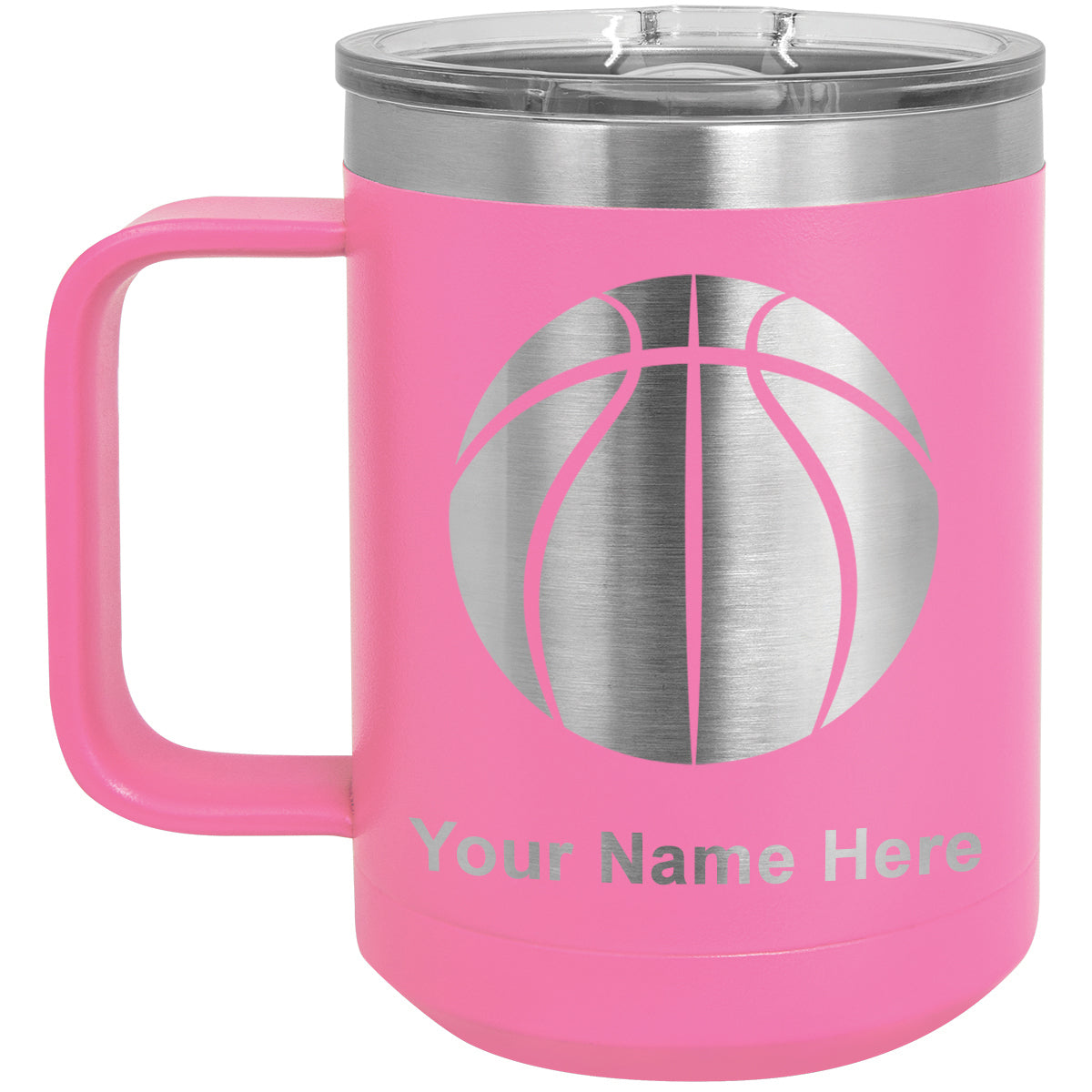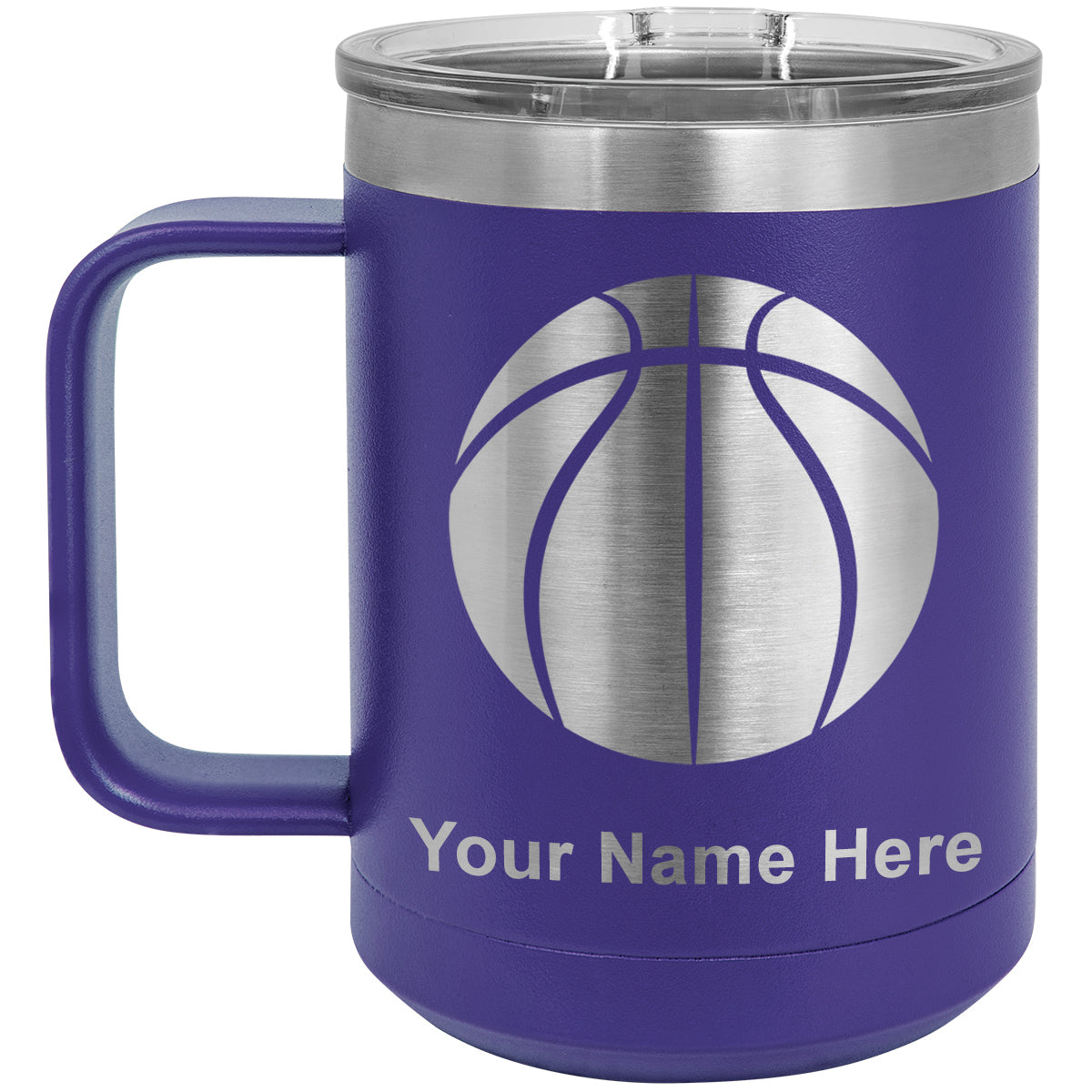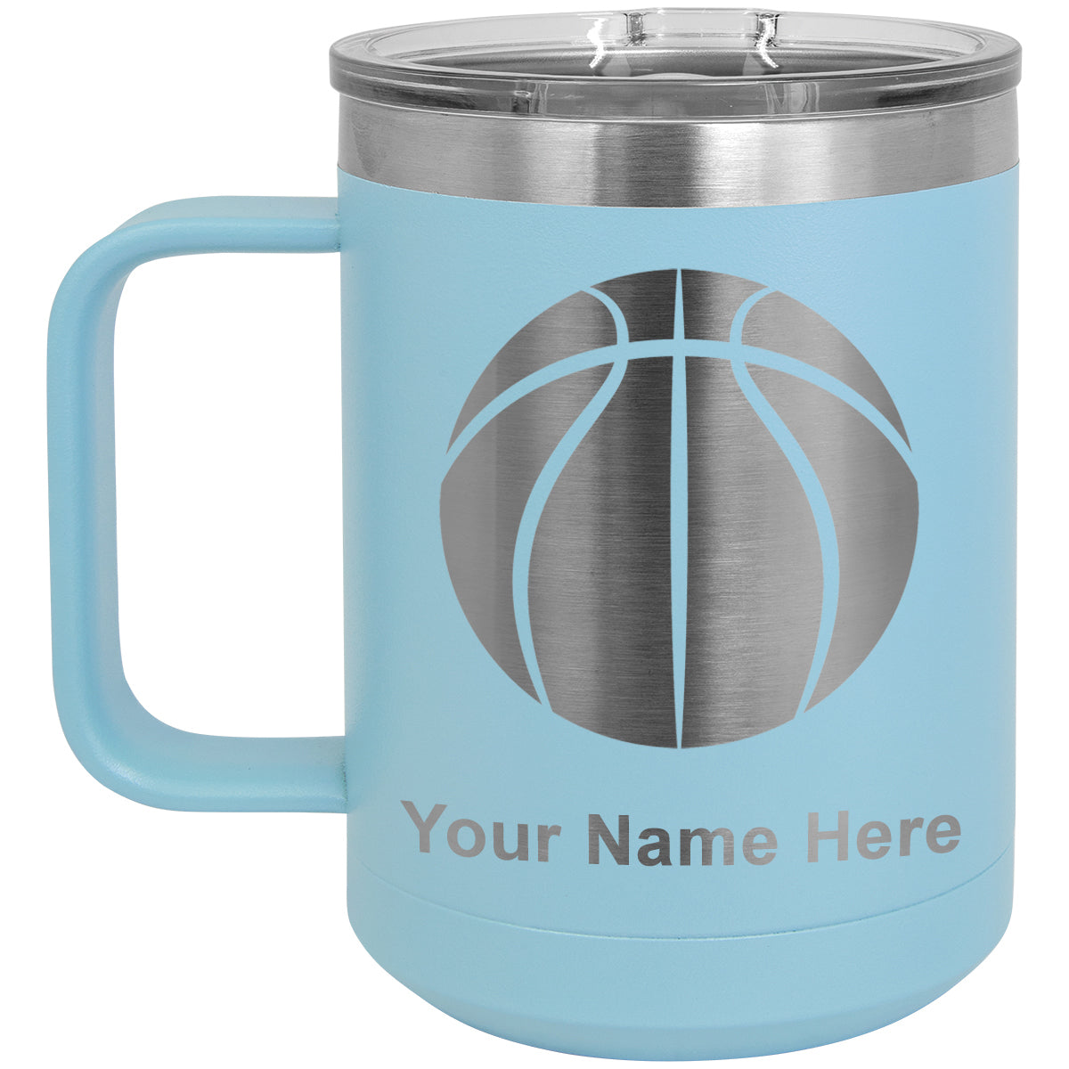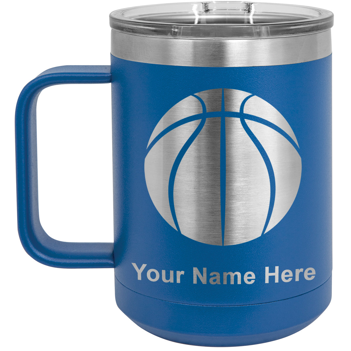 15oz Vacuum Insulated Coffee Mug, Basketball Ball, Personalized Engraving Included