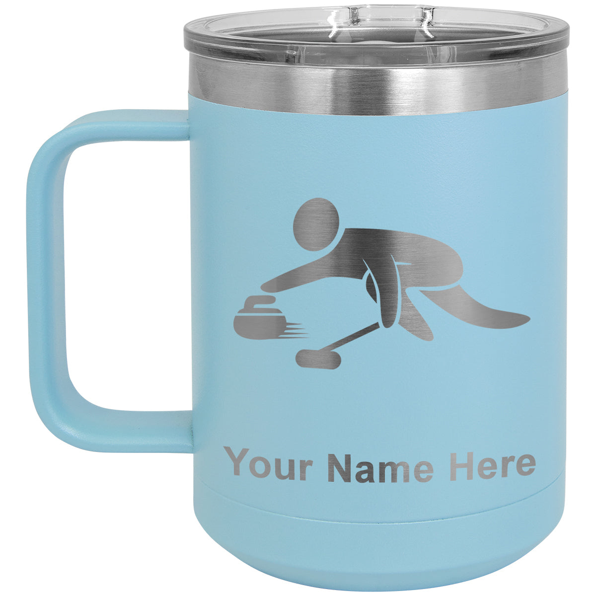15oz Vacuum Insulated Coffee Mug, Curling Figure, Personalized Engraving Included
