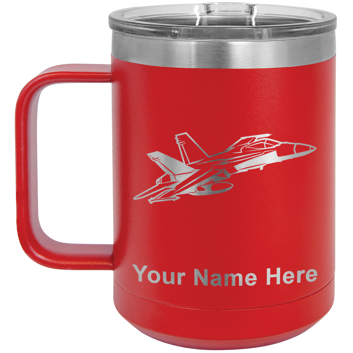 15oz Vacuum Insulated Coffee Mug, Fighter Jet 2, Personalized Engraving Included