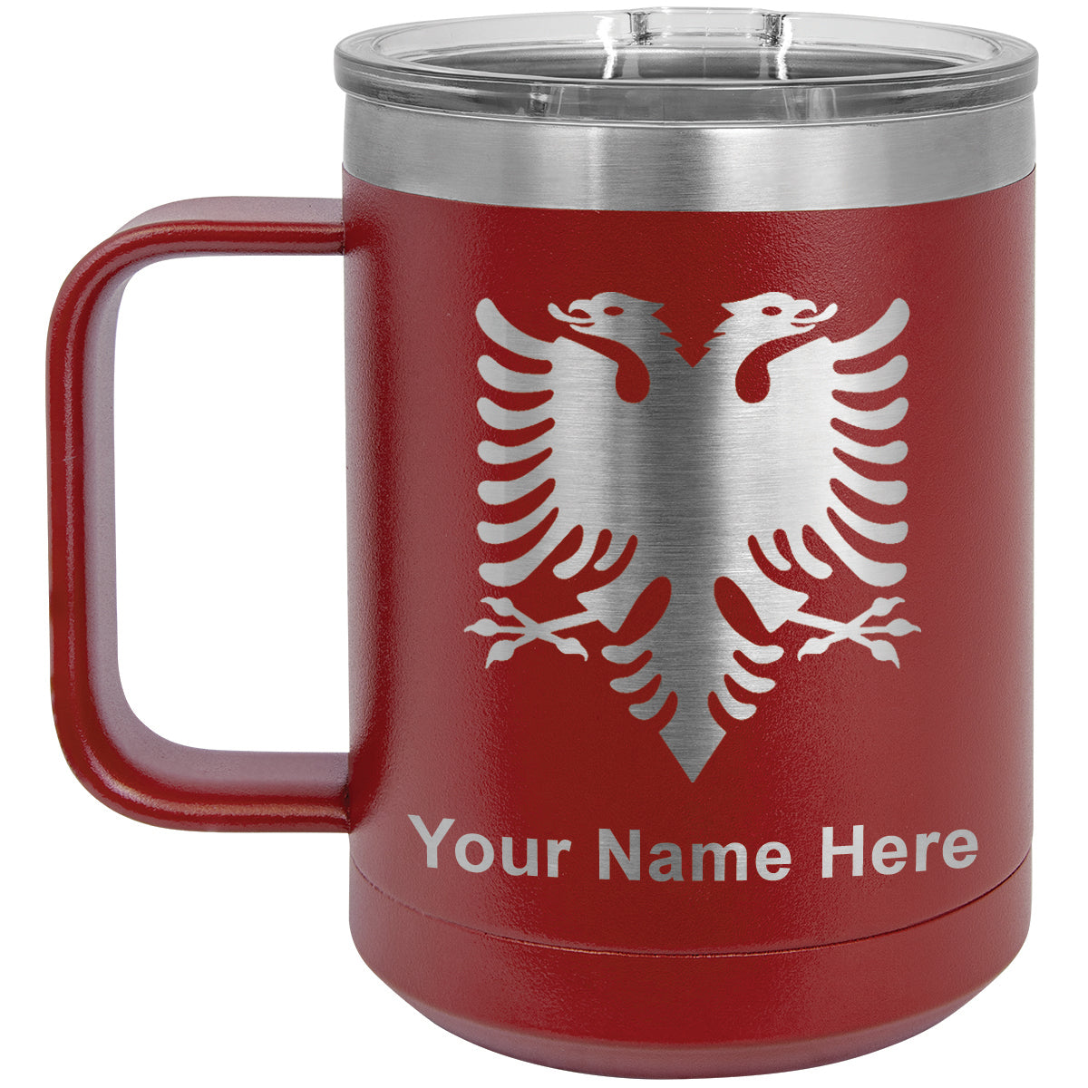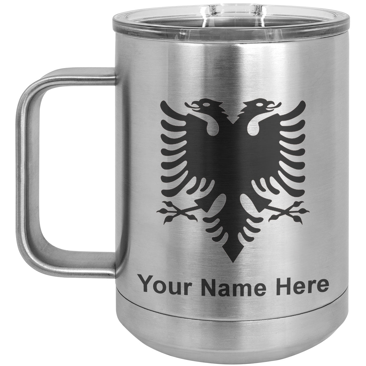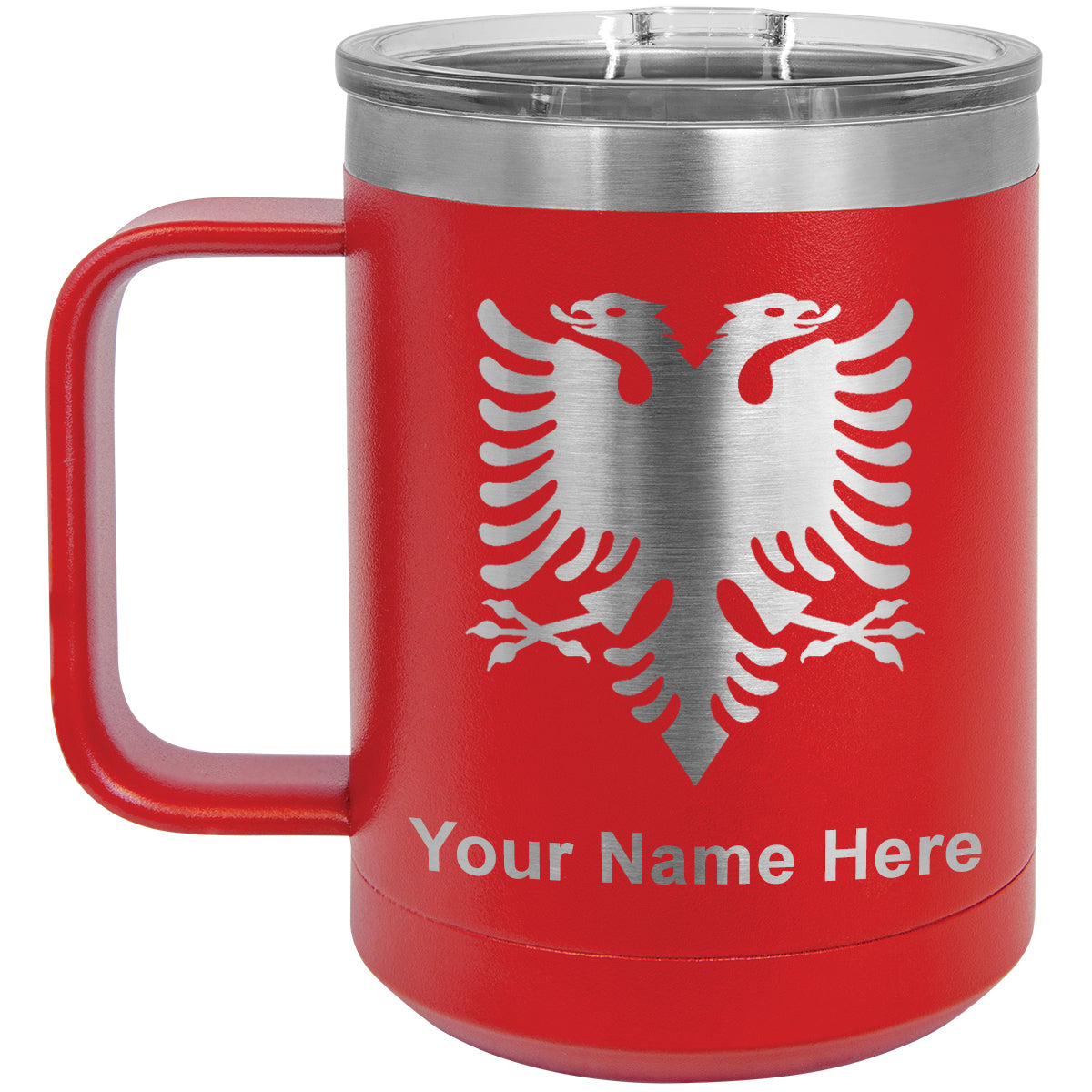 15oz Vacuum Insulated Coffee Mug, Flag of Albania, Personalized Engraving Included