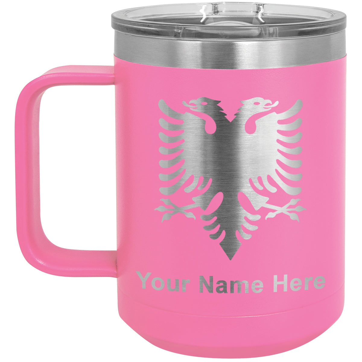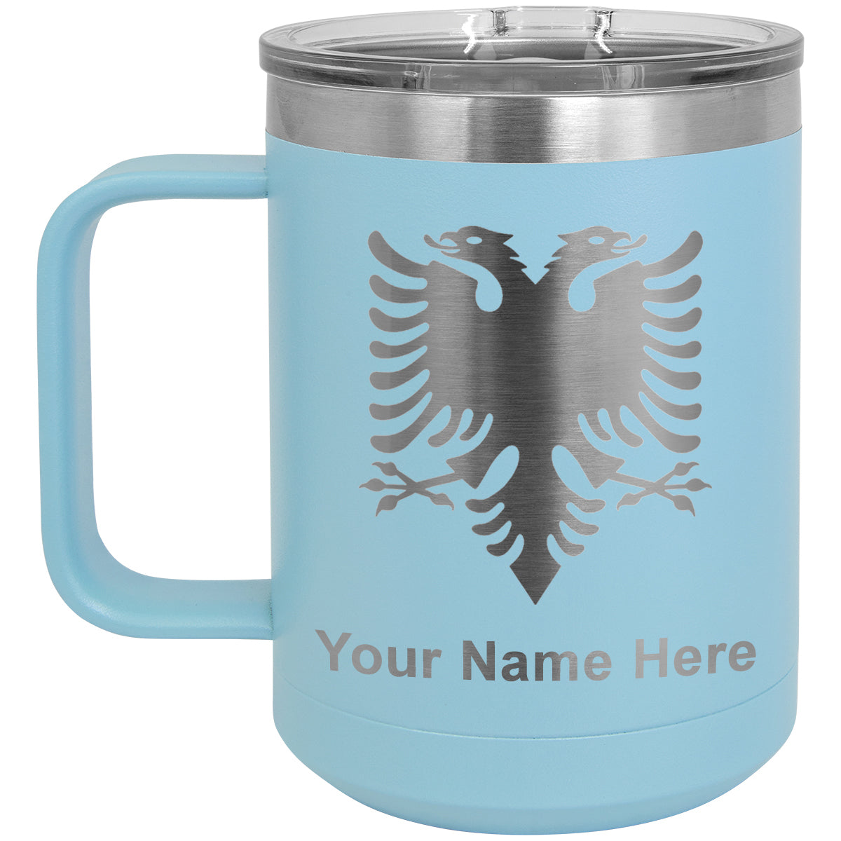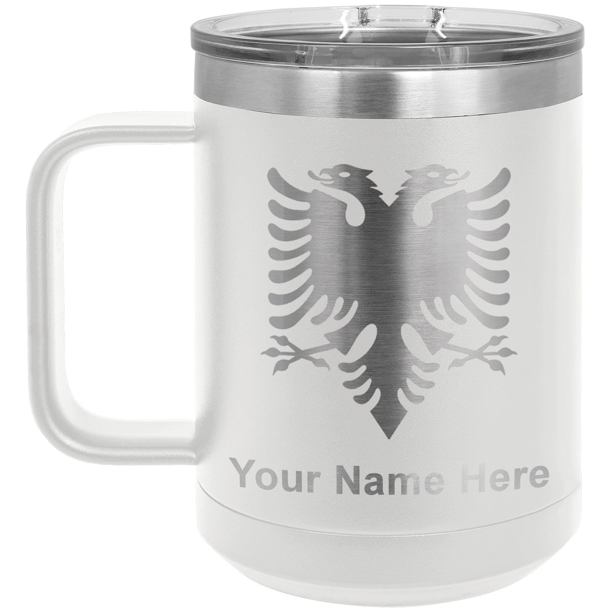 15oz Vacuum Insulated Coffee Mug, Flag of Albania, Personalized Engraving Included