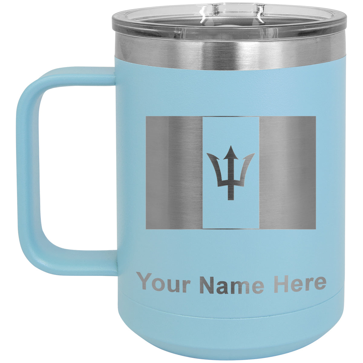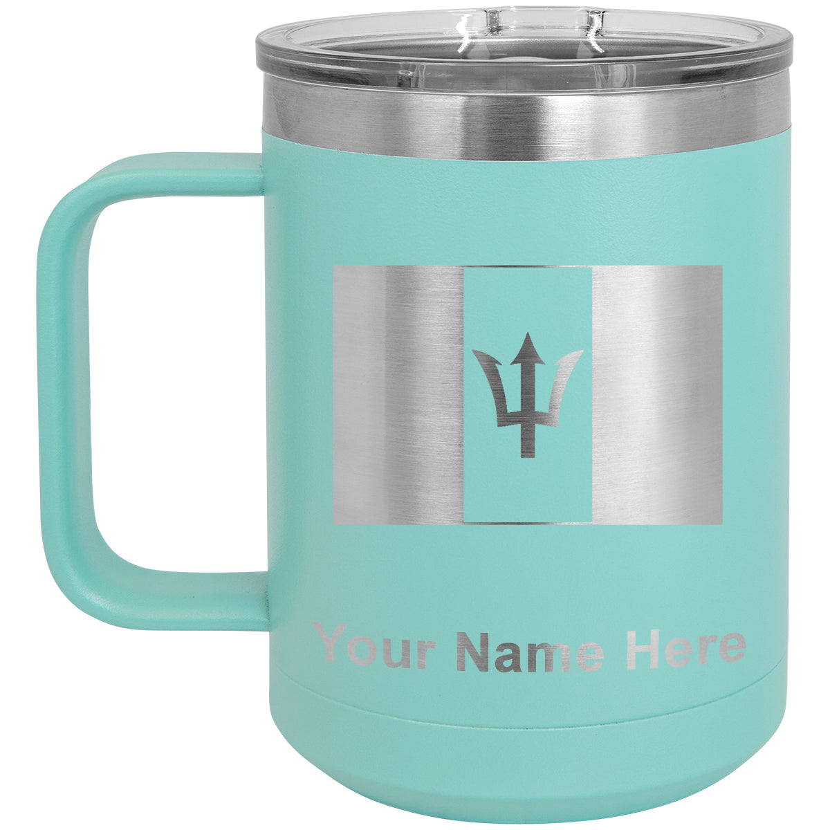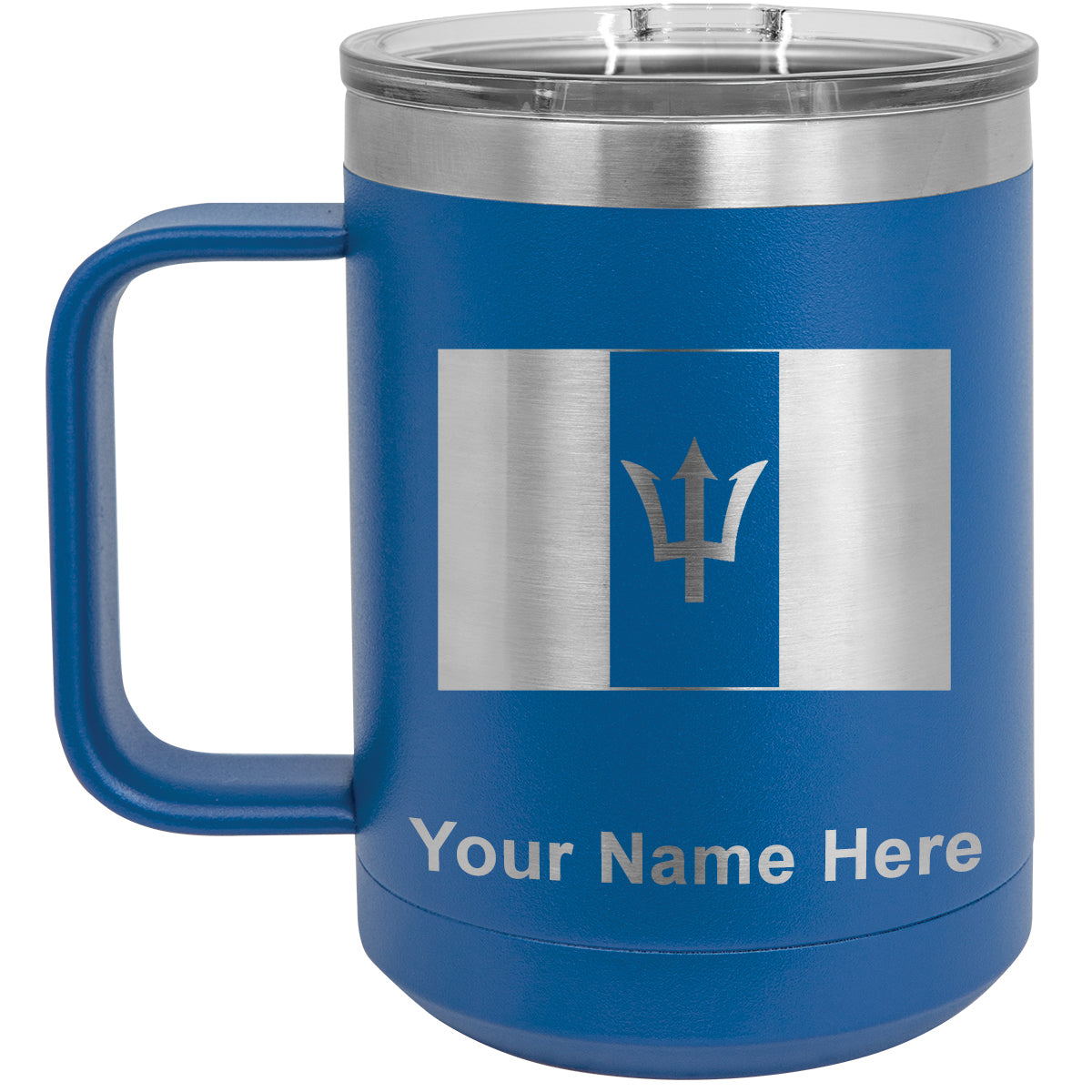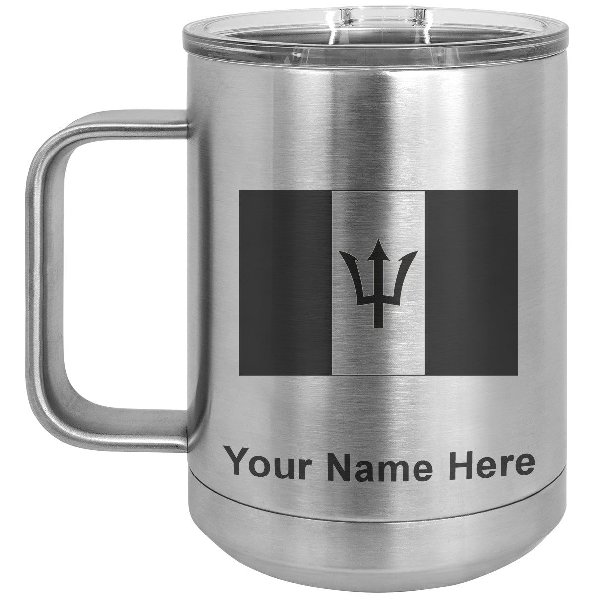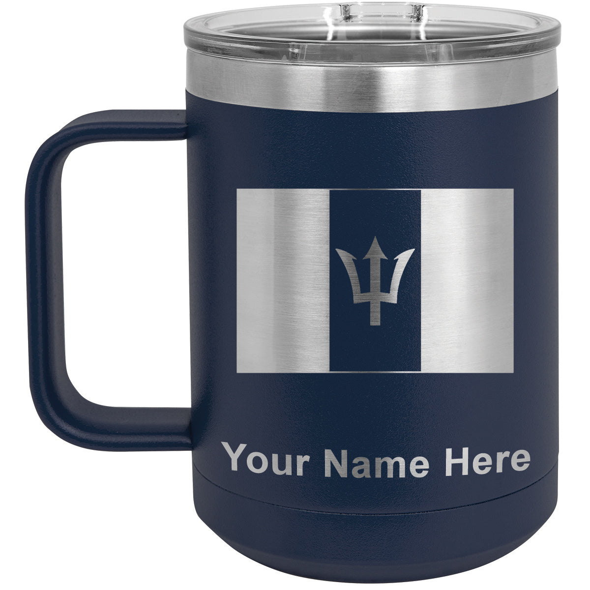15oz Vacuum Insulated Coffee Mug, Flag of Barbados, Personalized Engraving Included