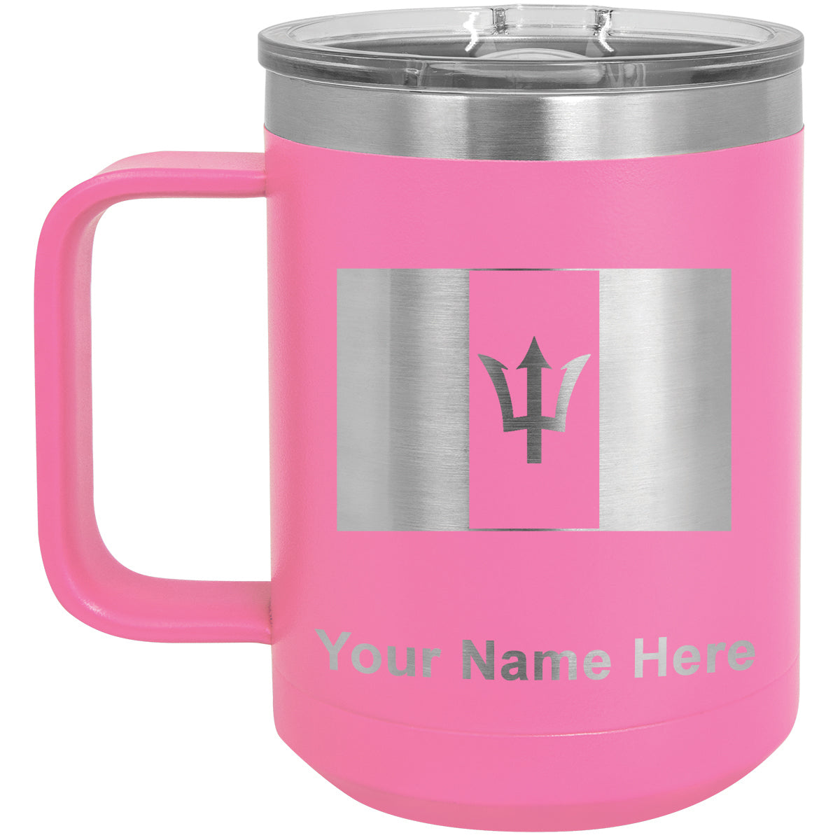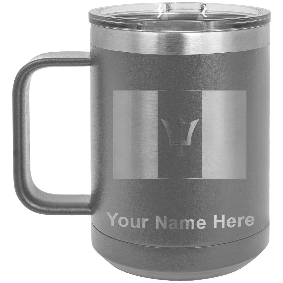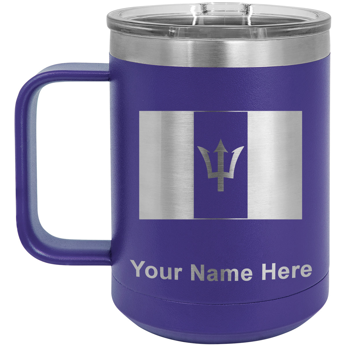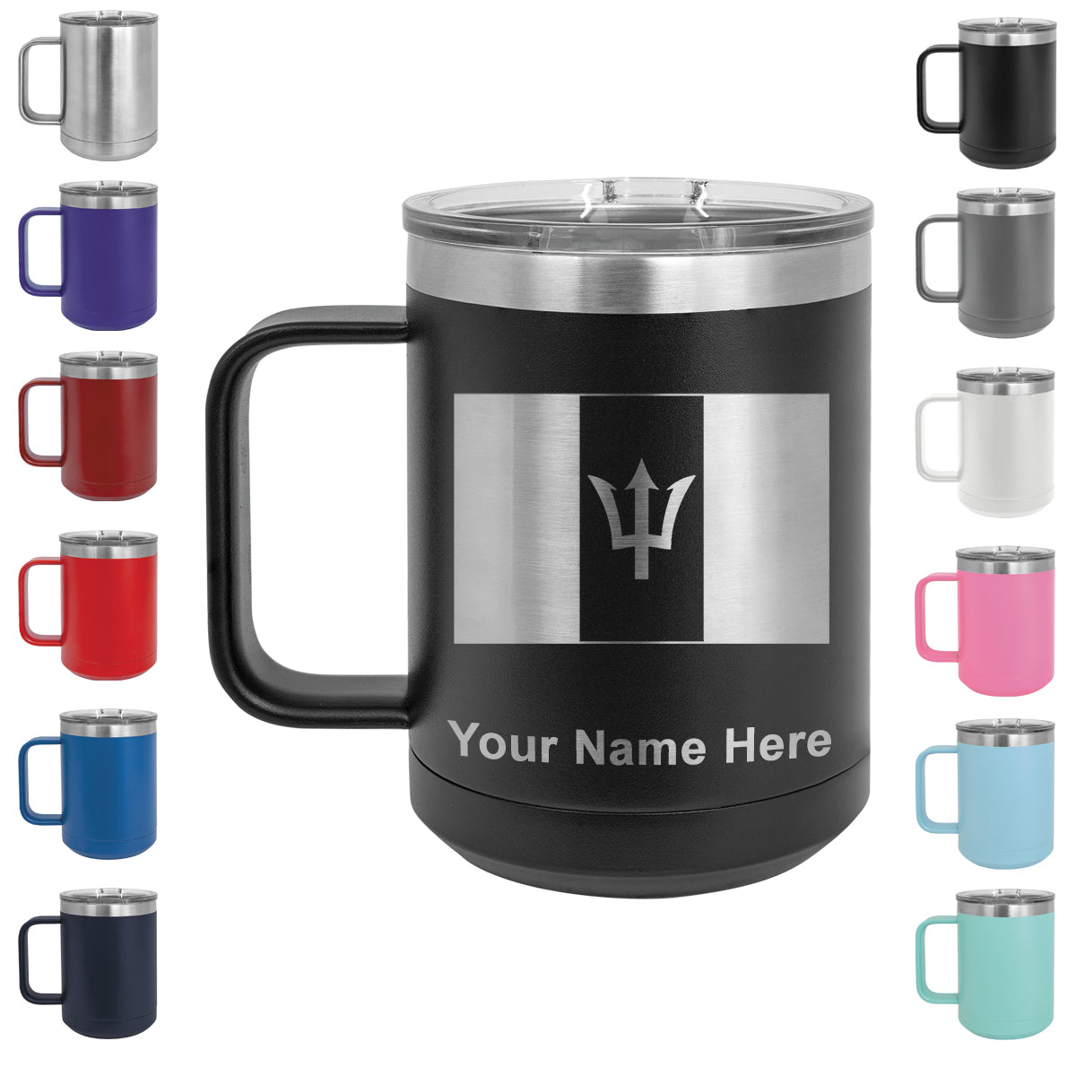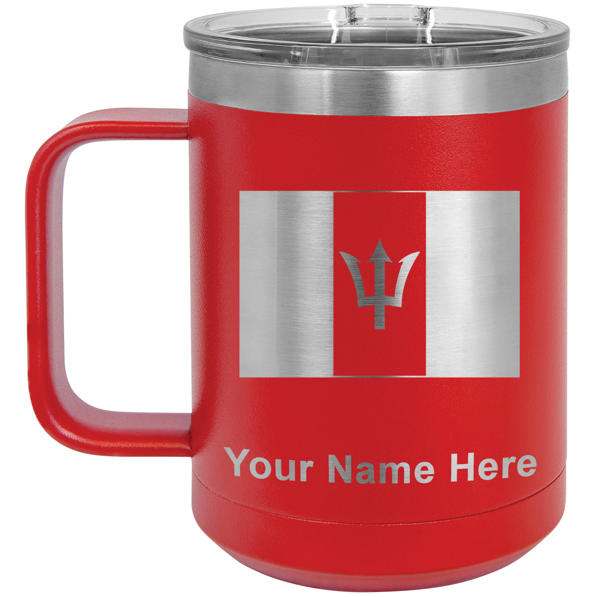 15oz Vacuum Insulated Coffee Mug, Flag of Barbados, Personalized Engraving Included