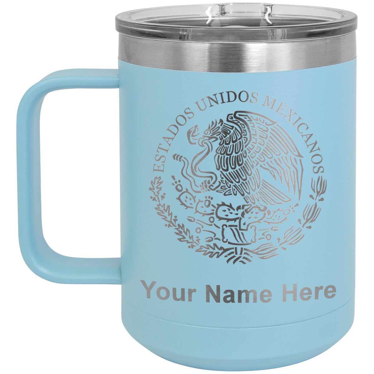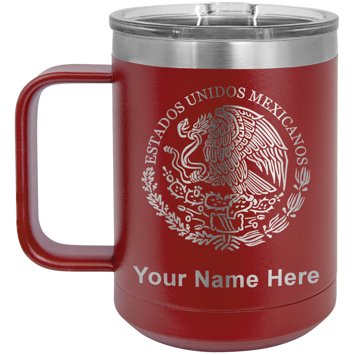 15oz Vacuum Insulated Coffee Mug, Flag of Mexico, Personalized Engraving Included