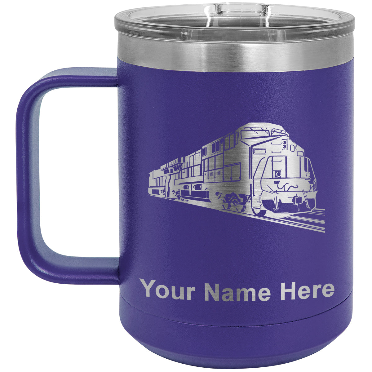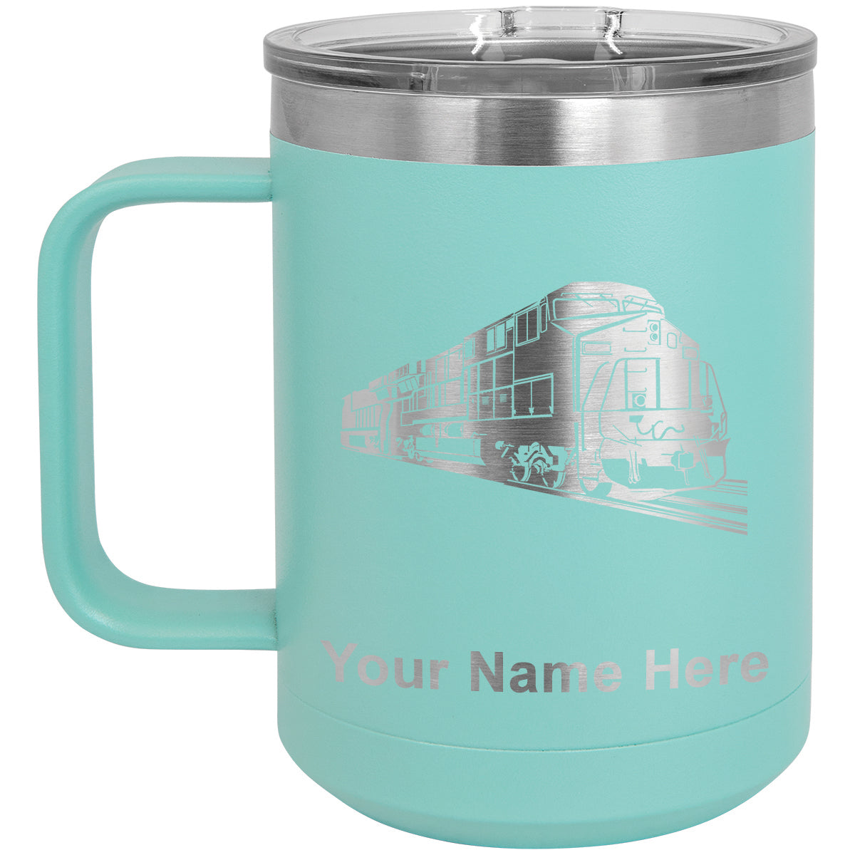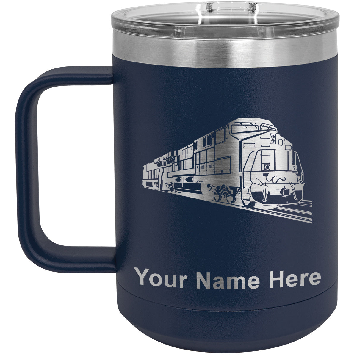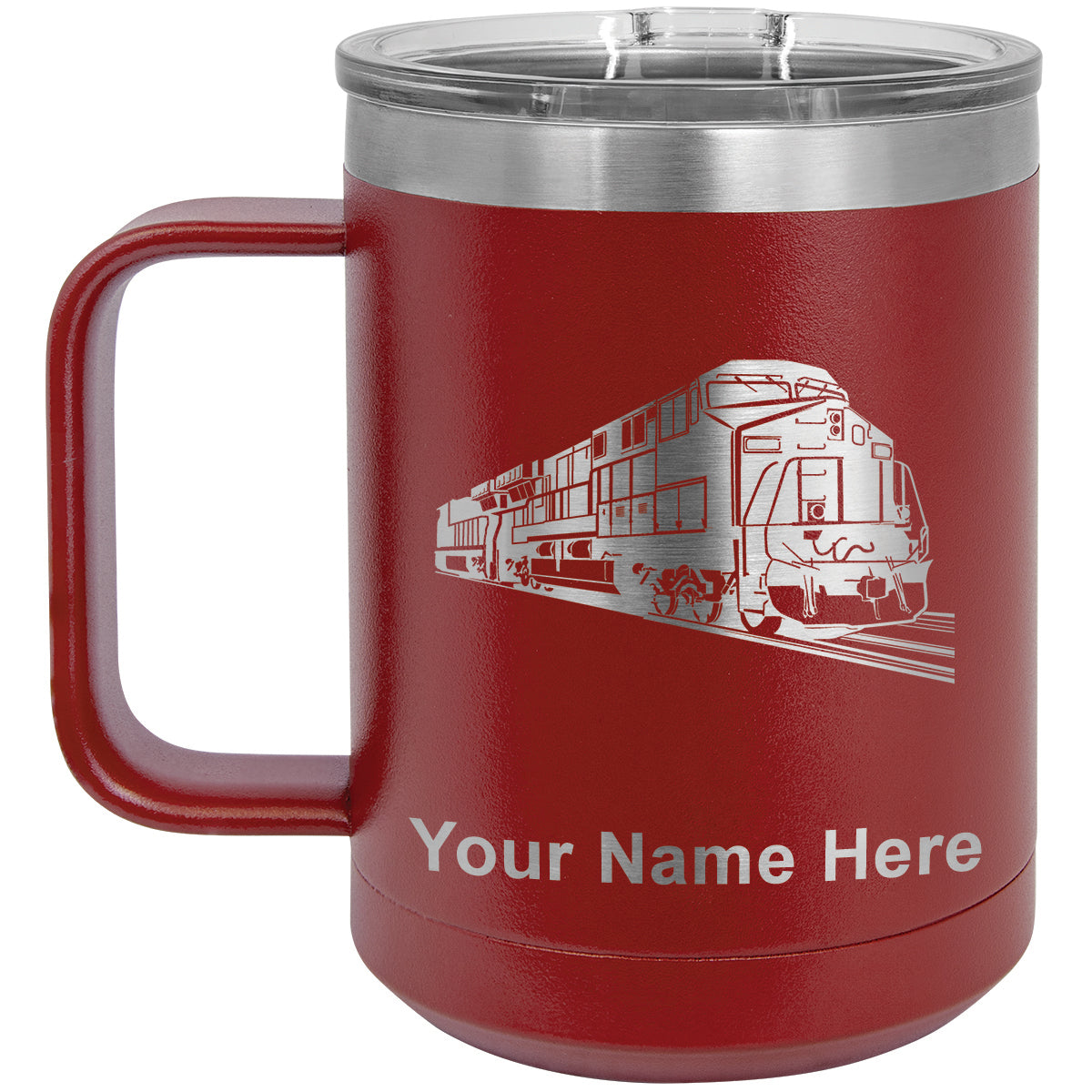 15oz Vacuum Insulated Coffee Mug, Freight Train, Personalized Engraving Included