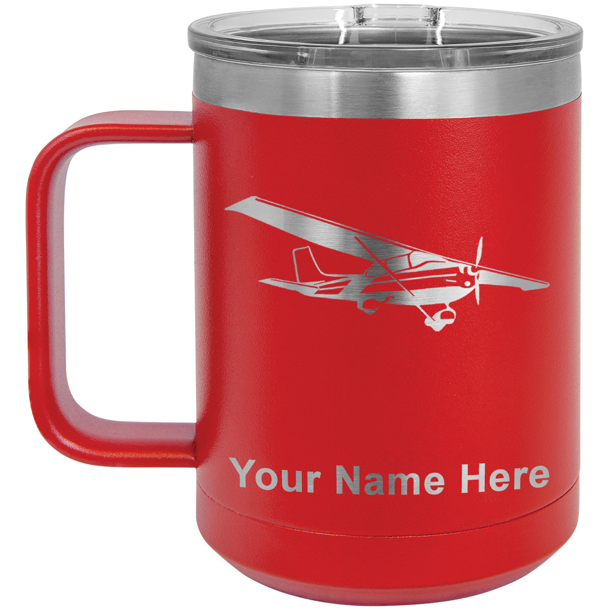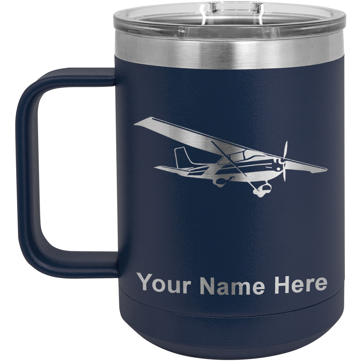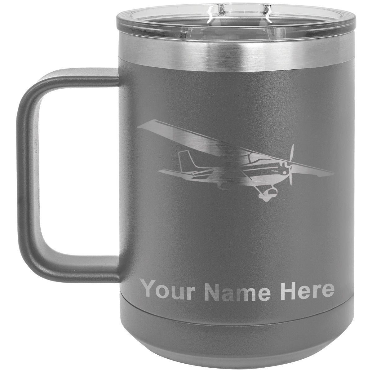 15oz Vacuum Insulated Coffee Mug, High Wing Airplane, Personalized Engraving Included