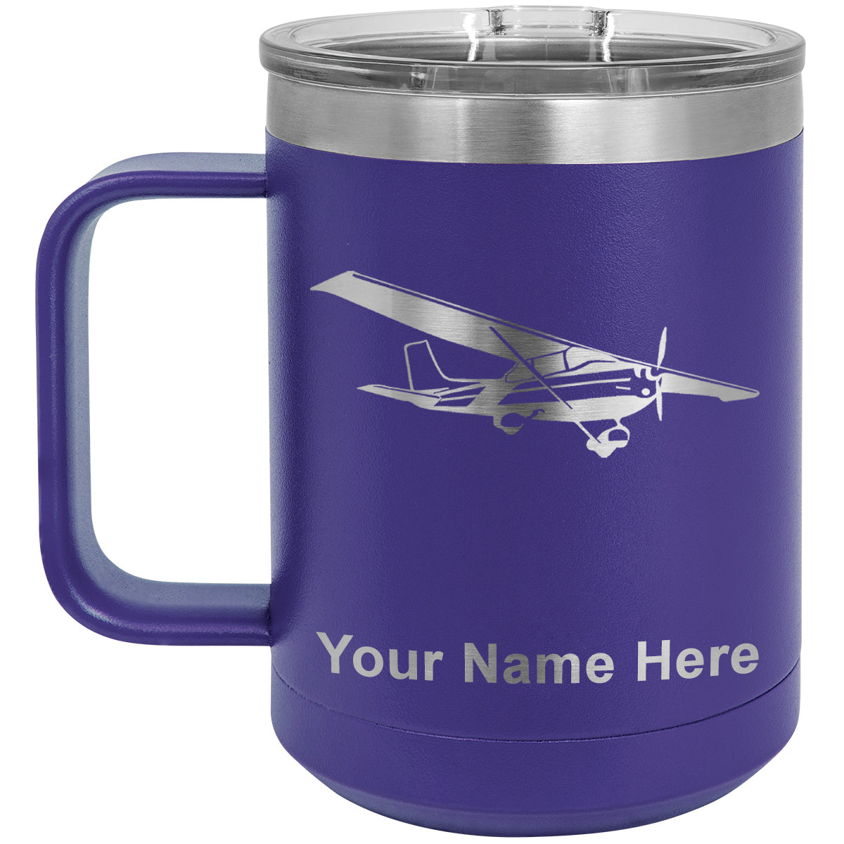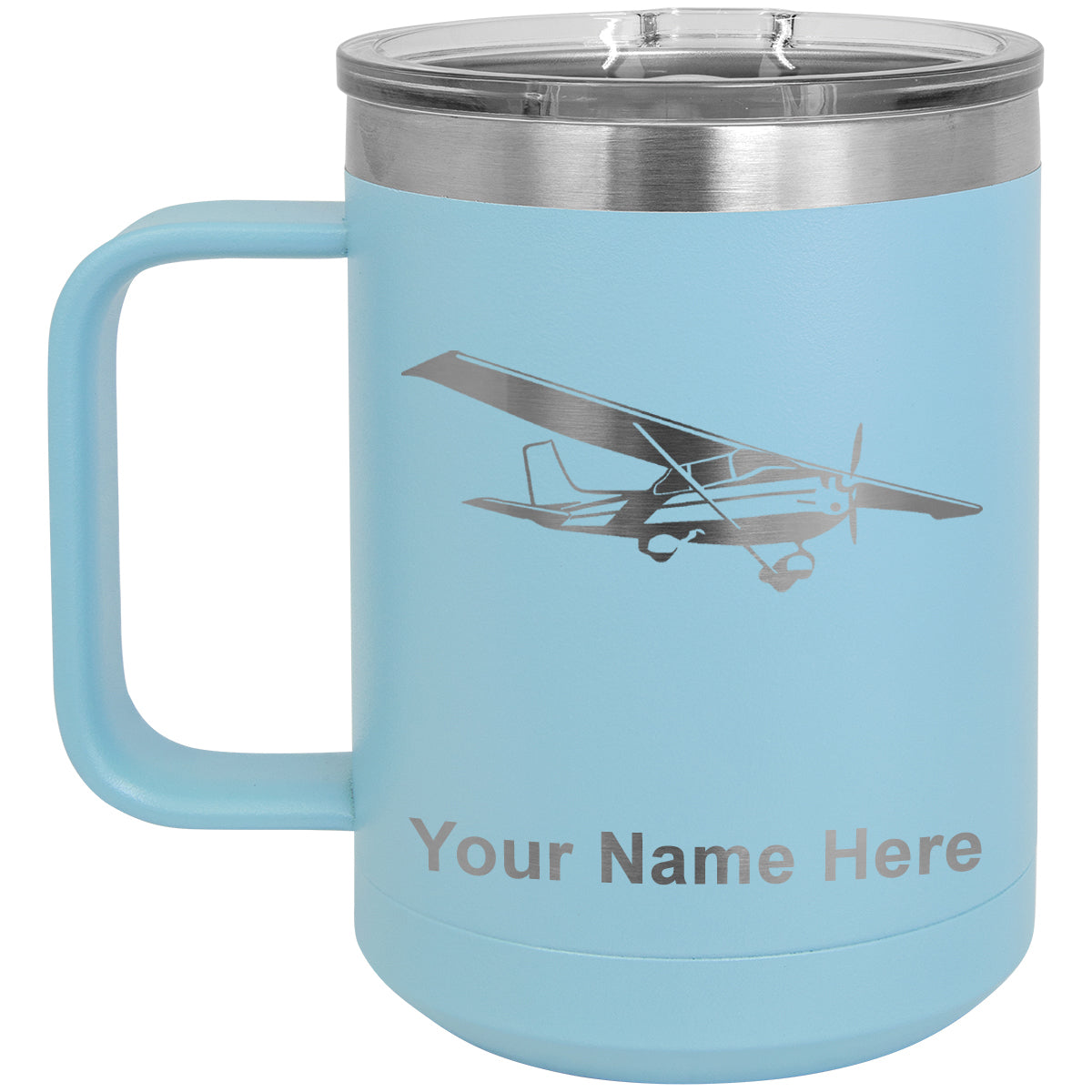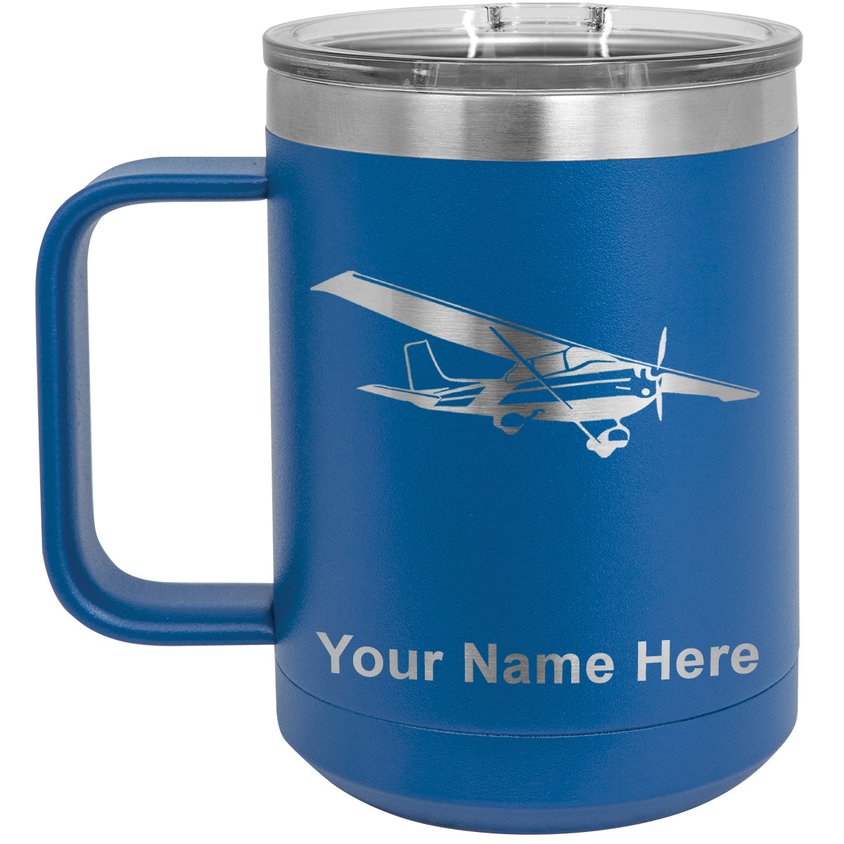 15oz Vacuum Insulated Coffee Mug, High Wing Airplane, Personalized Engraving Included