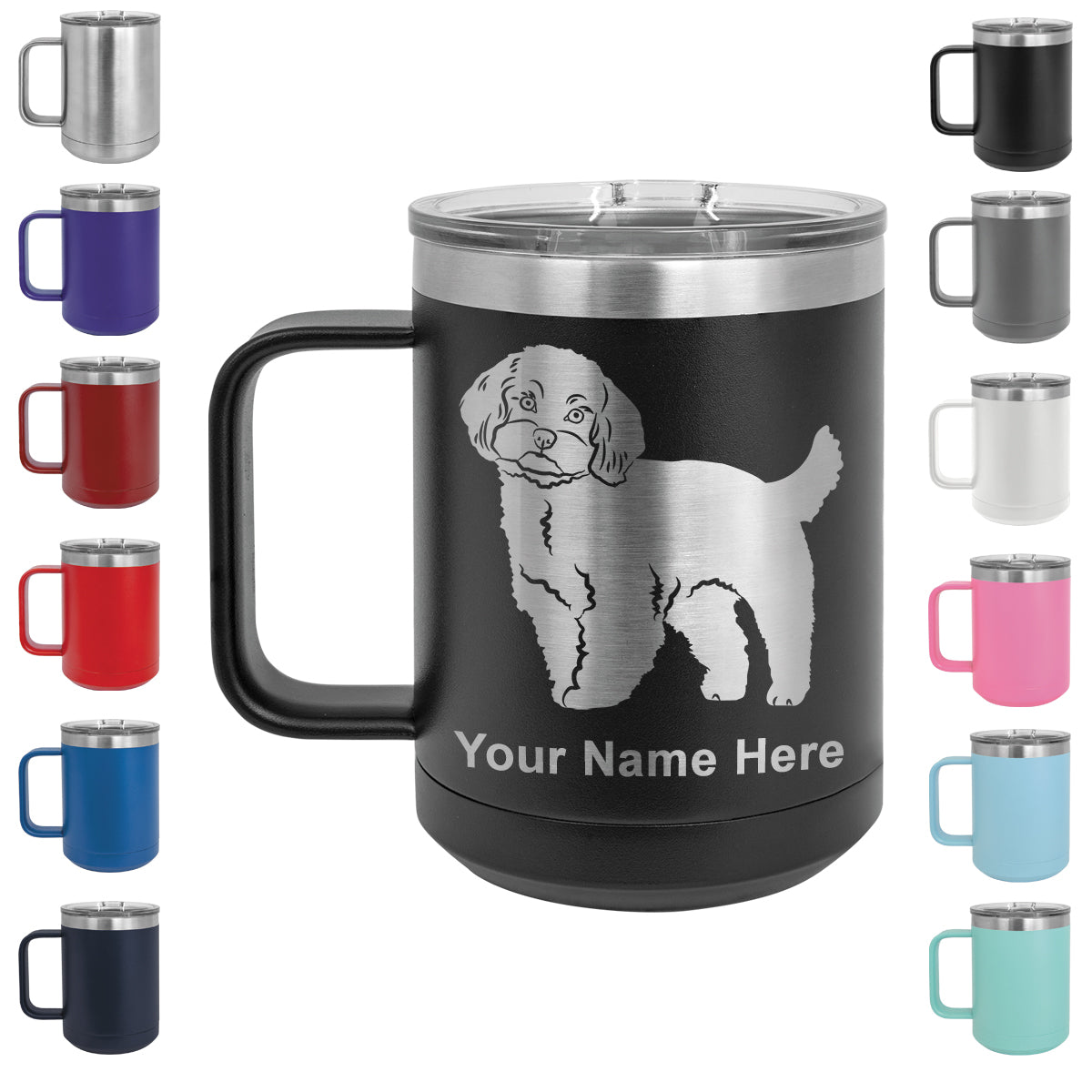 15oz Vacuum Insulated Coffee Mug, Maltese Dog, Personalized Engraving Included