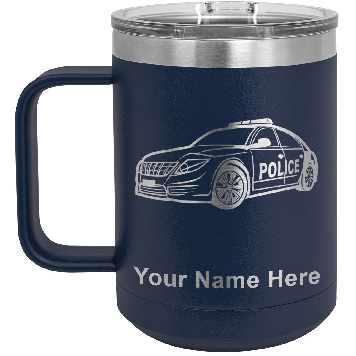 15oz Vacuum Insulated Coffee Mug, Police Car, Personalized Engraving Included