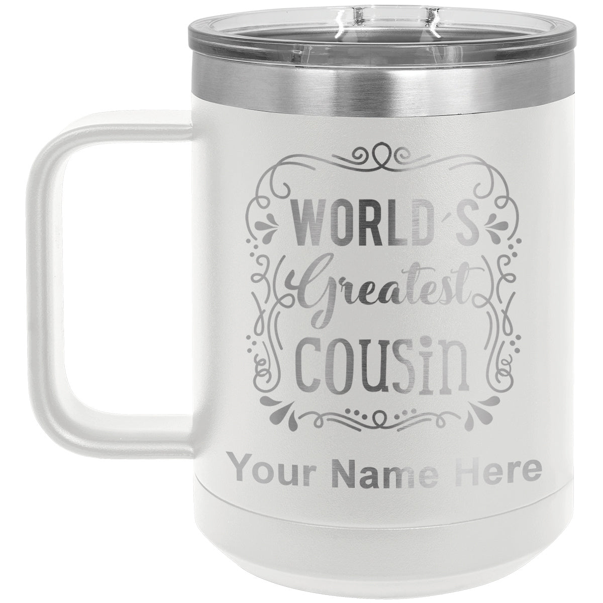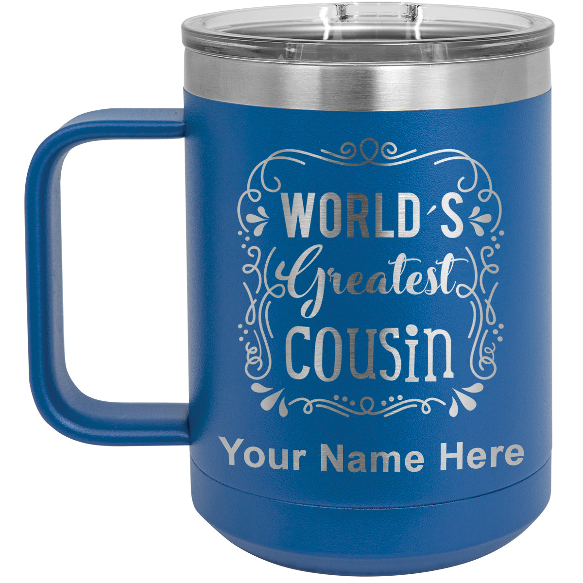 15oz Vacuum Insulated Coffee Mug, World's Greatest Cousin, Personalized Engraving Included