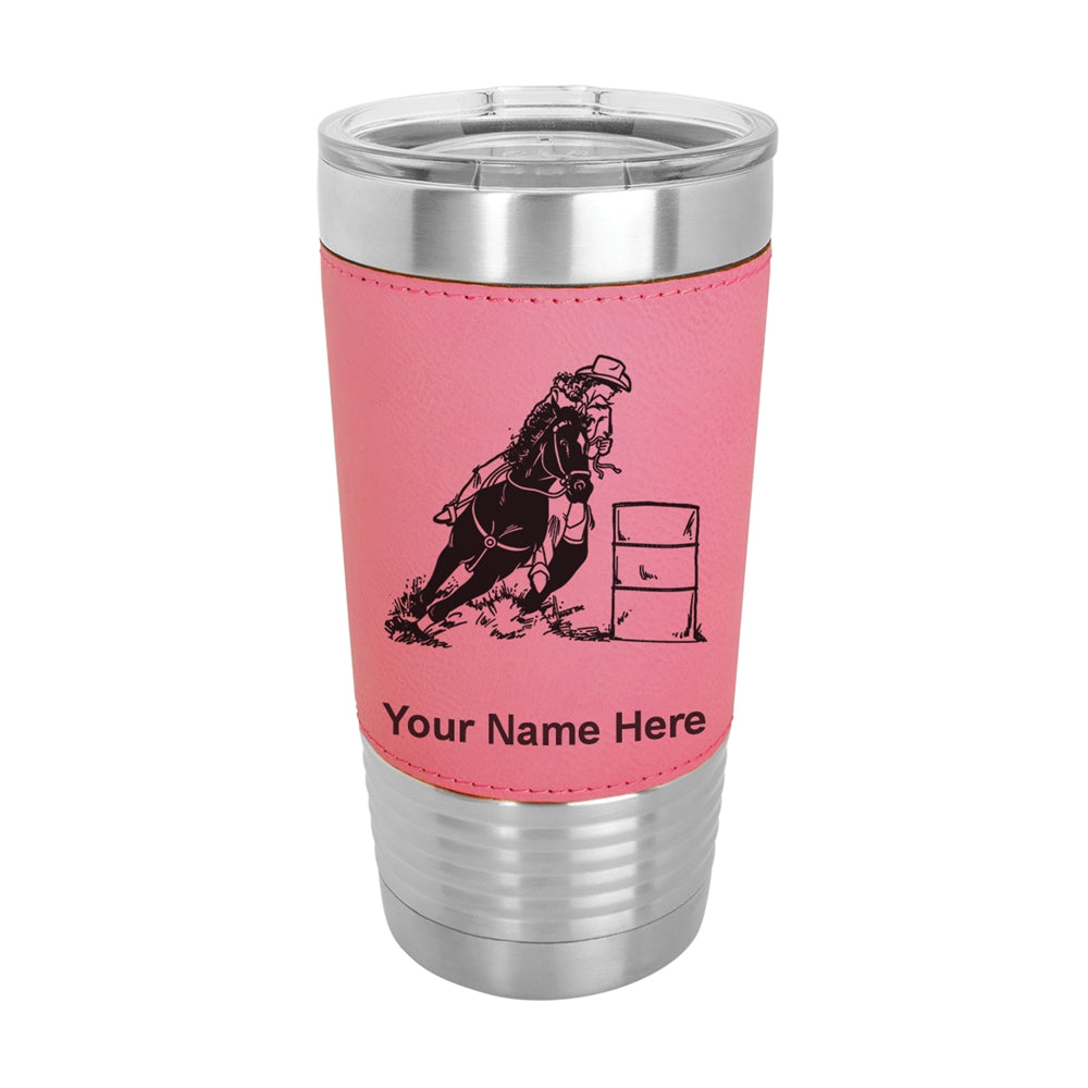 20oz Faux Leather Tumbler Mug, Barrel Racer, Personalized Engraving Included