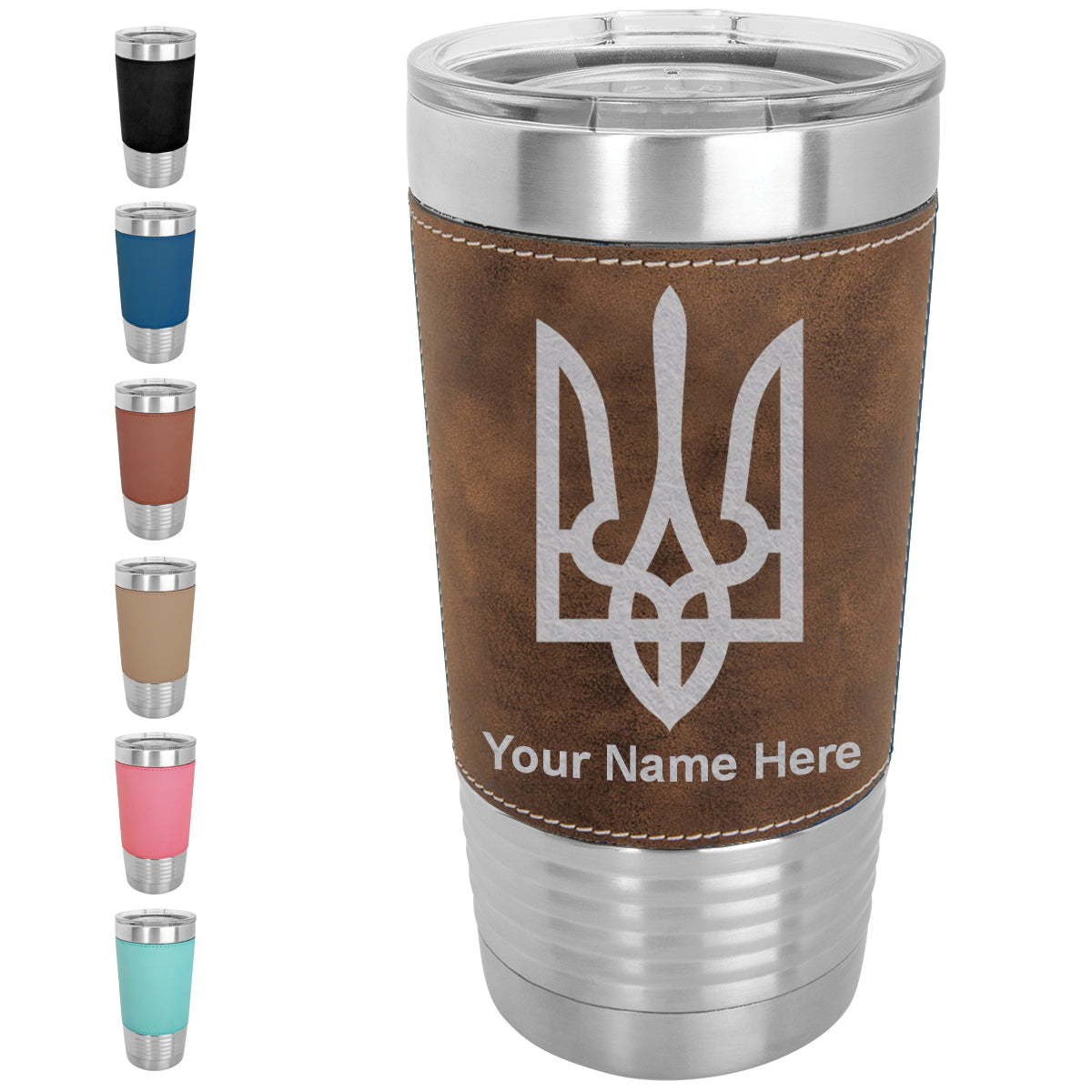 20oz Faux Leather Tumbler Mug, Flag of Ukraine, Personalized Engraving Included