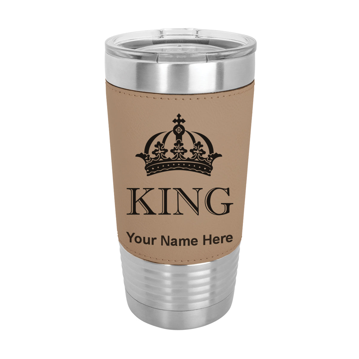 20oz Faux Leather Tumbler Mug, King Crown, Personalized Engraving Included