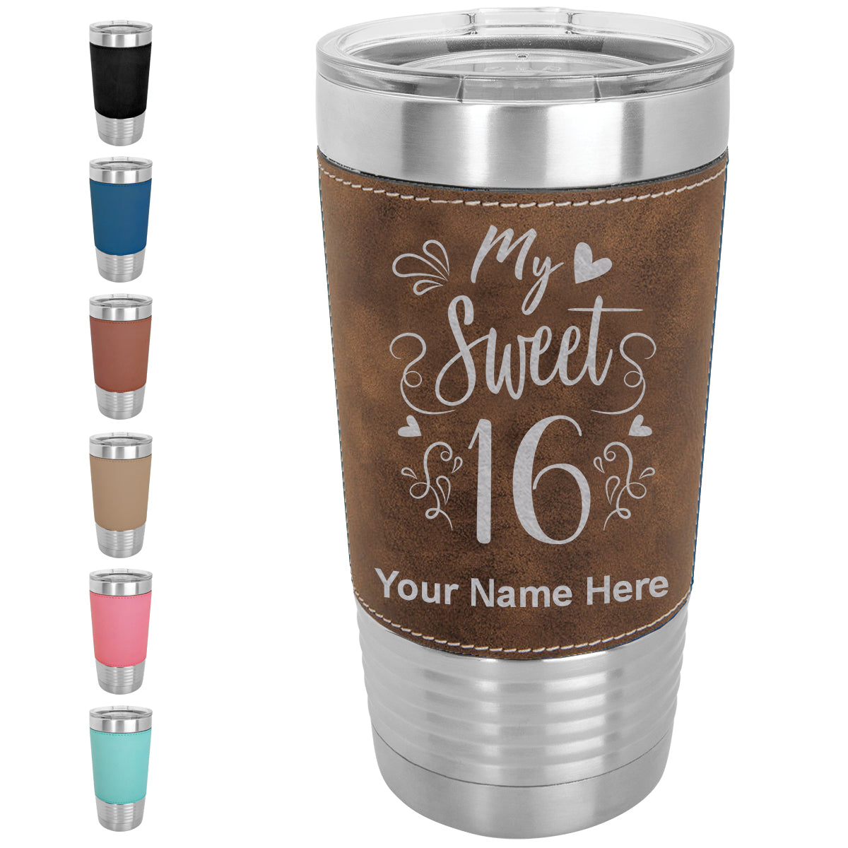 20oz Faux Leather Tumbler Mug, My Sweet 16, Personalized Engraving Included