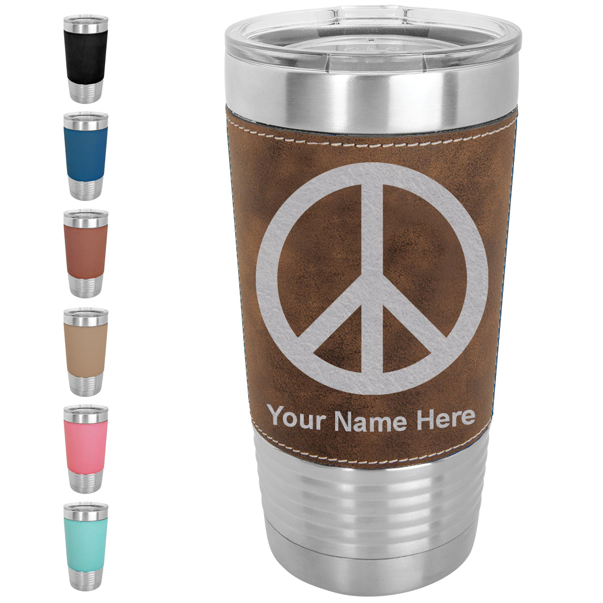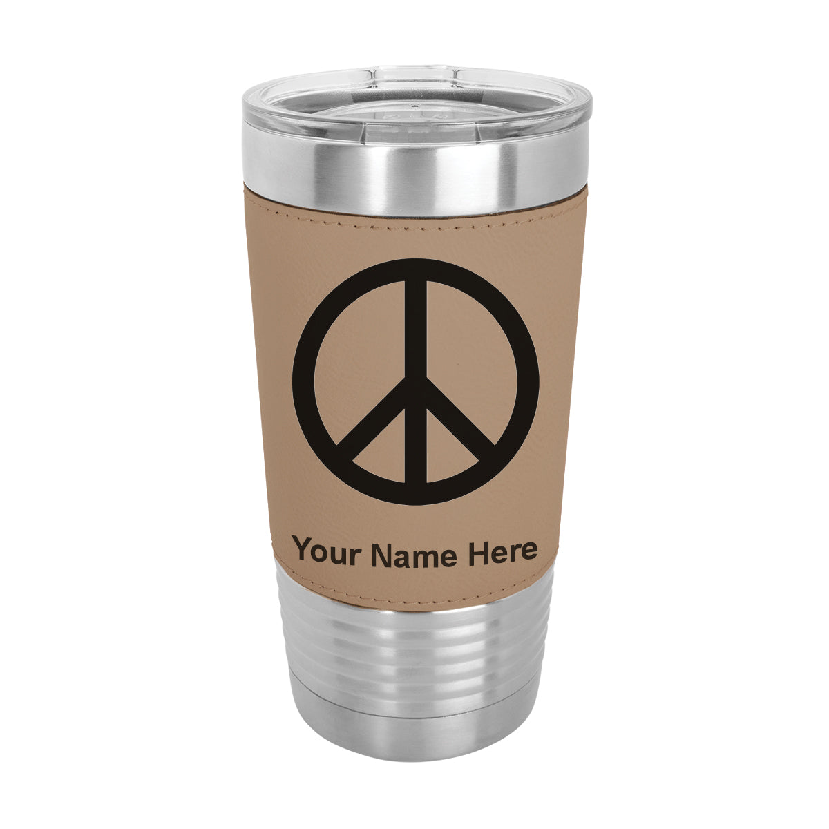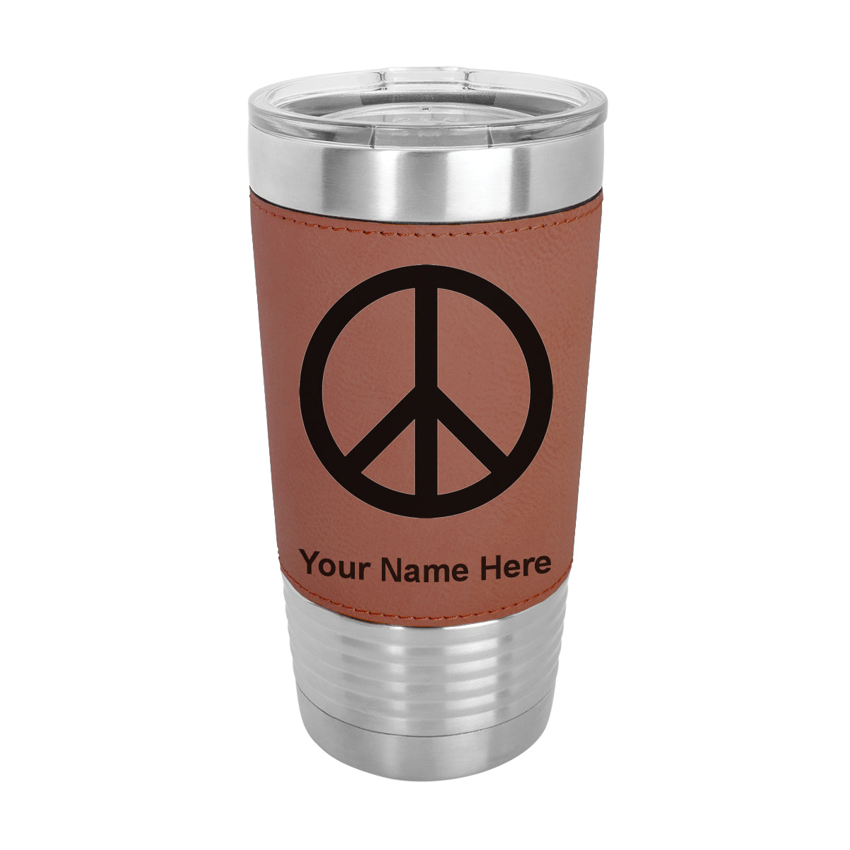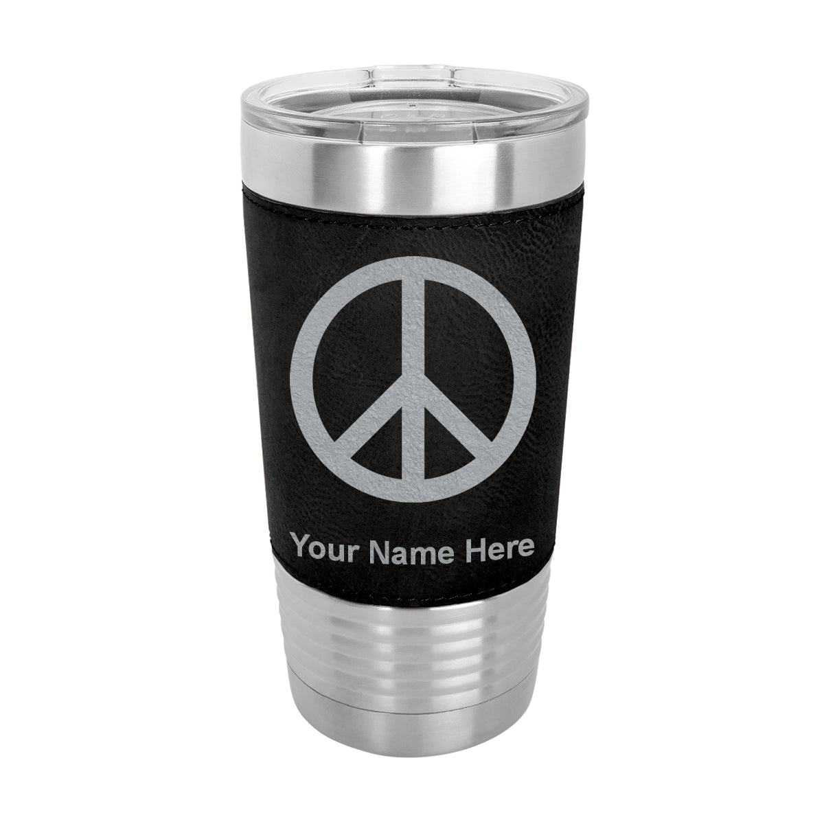20oz Faux Leather Tumbler Mug, Peace Sign, Personalized Engraving Included