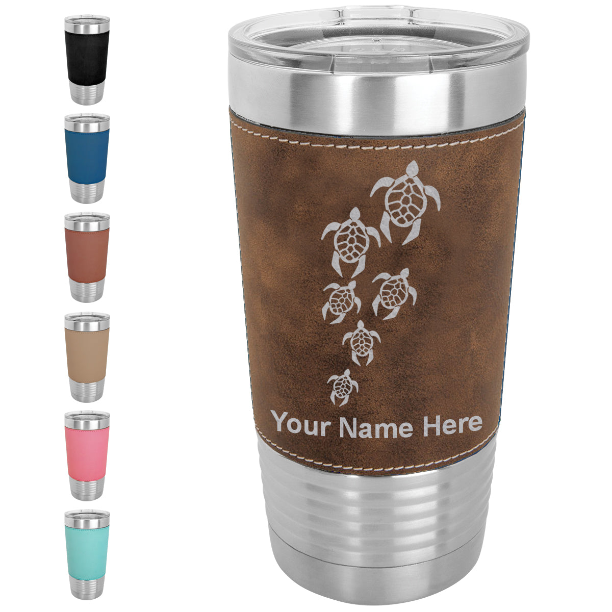 20oz Faux Leather Tumbler Mug, Sea Turtle Family, Personalized Engraving Included