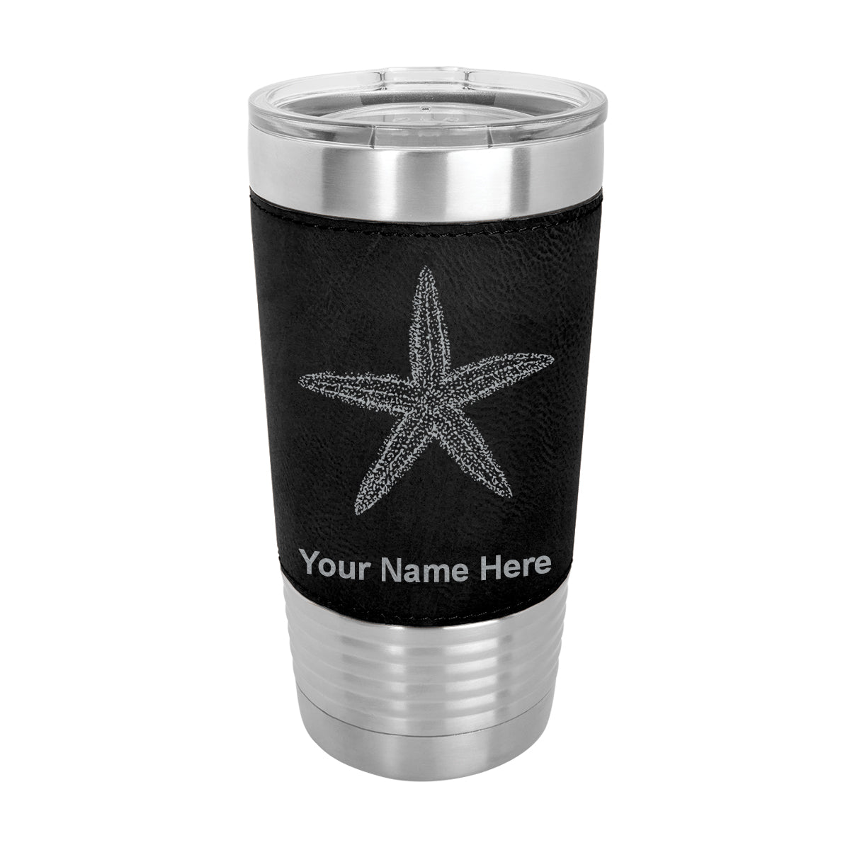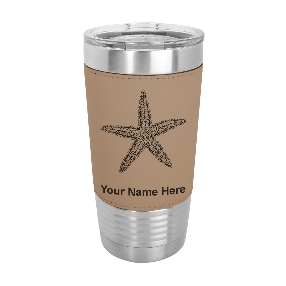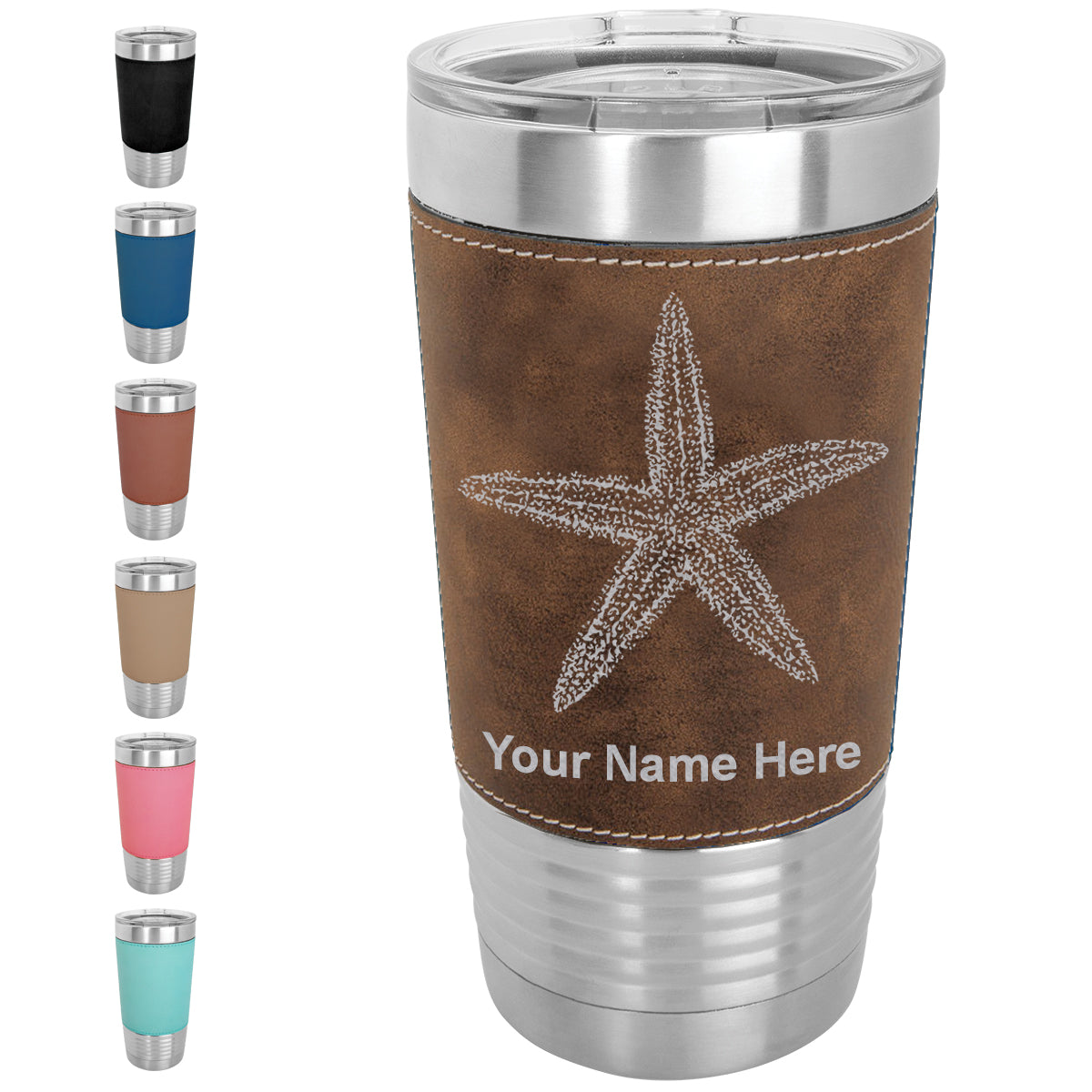 20oz Faux Leather Tumbler Mug, Starfish, Personalized Engraving Included