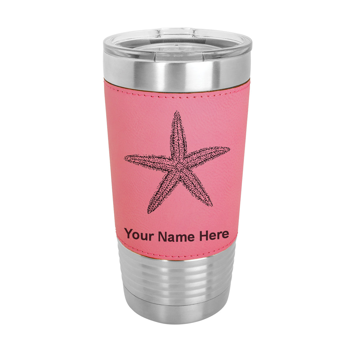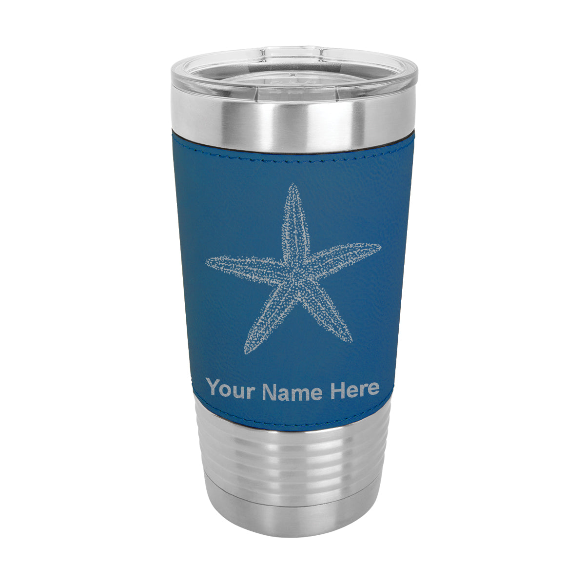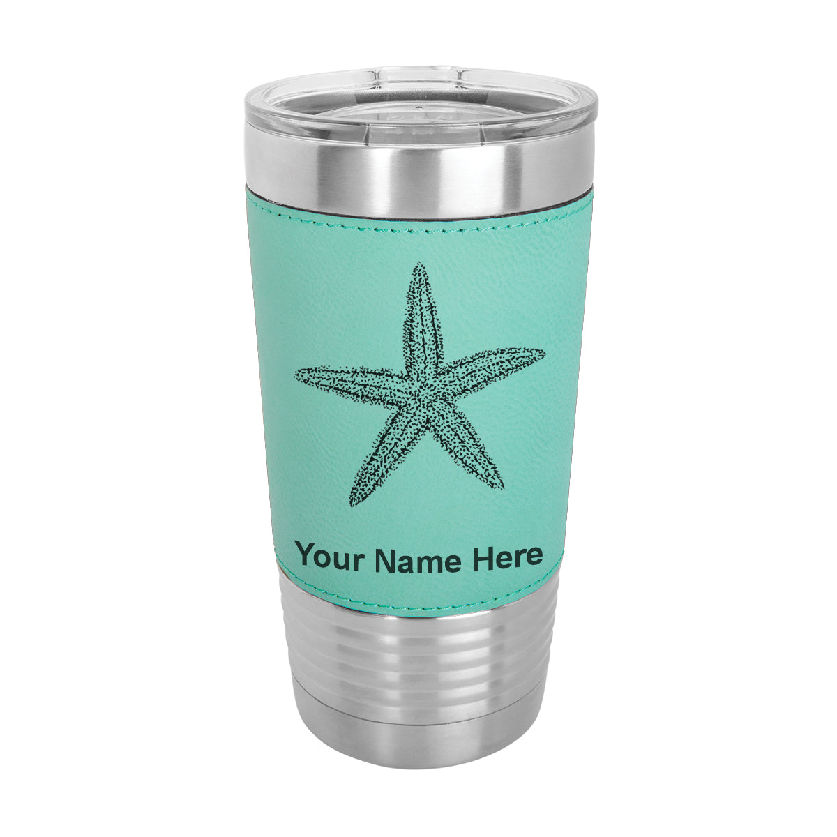 20oz Faux Leather Tumbler Mug, Starfish, Personalized Engraving Included