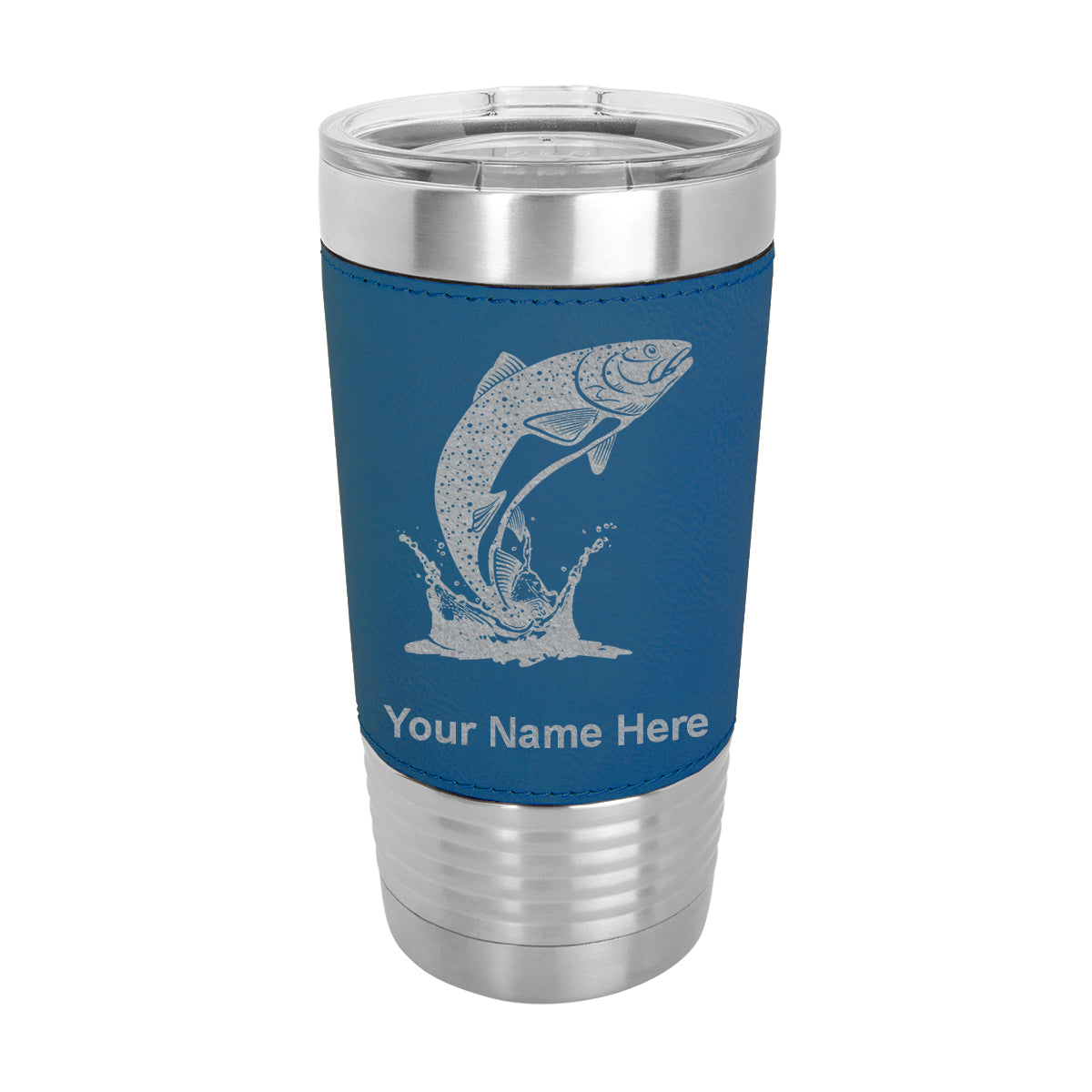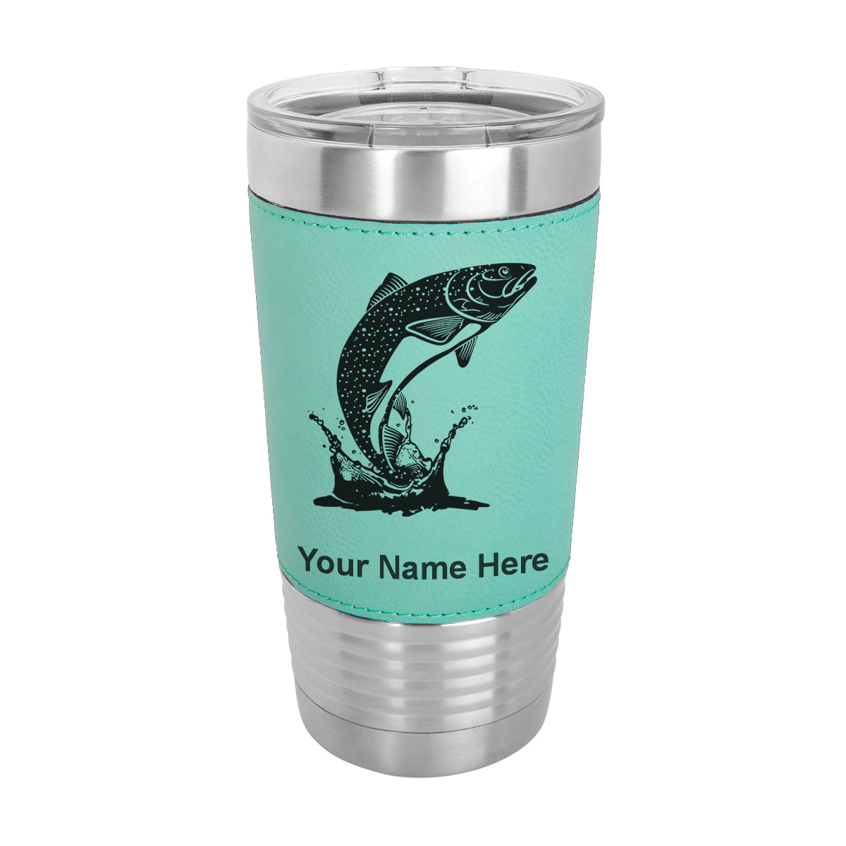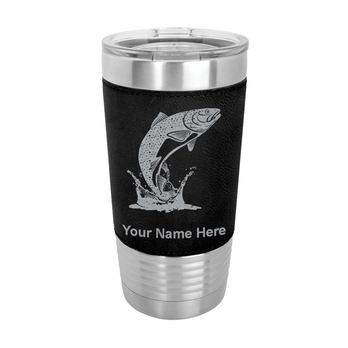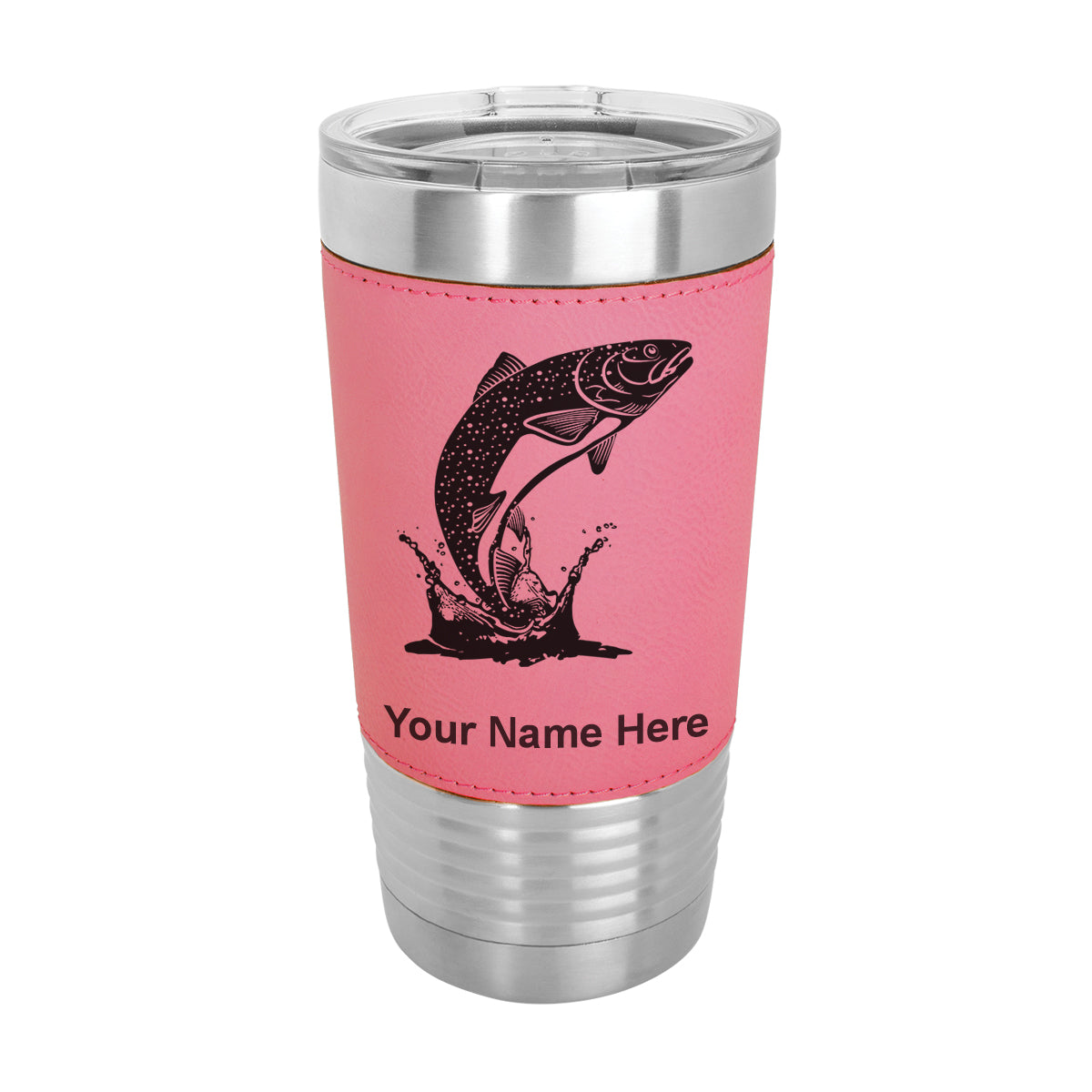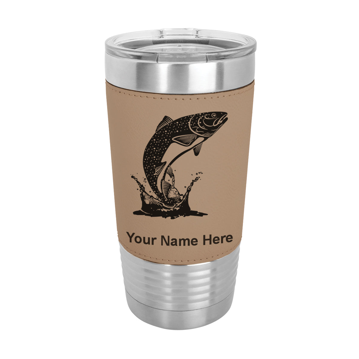20oz Faux Leather Tumbler Mug, Trout Fish, Personalized Engraving Included