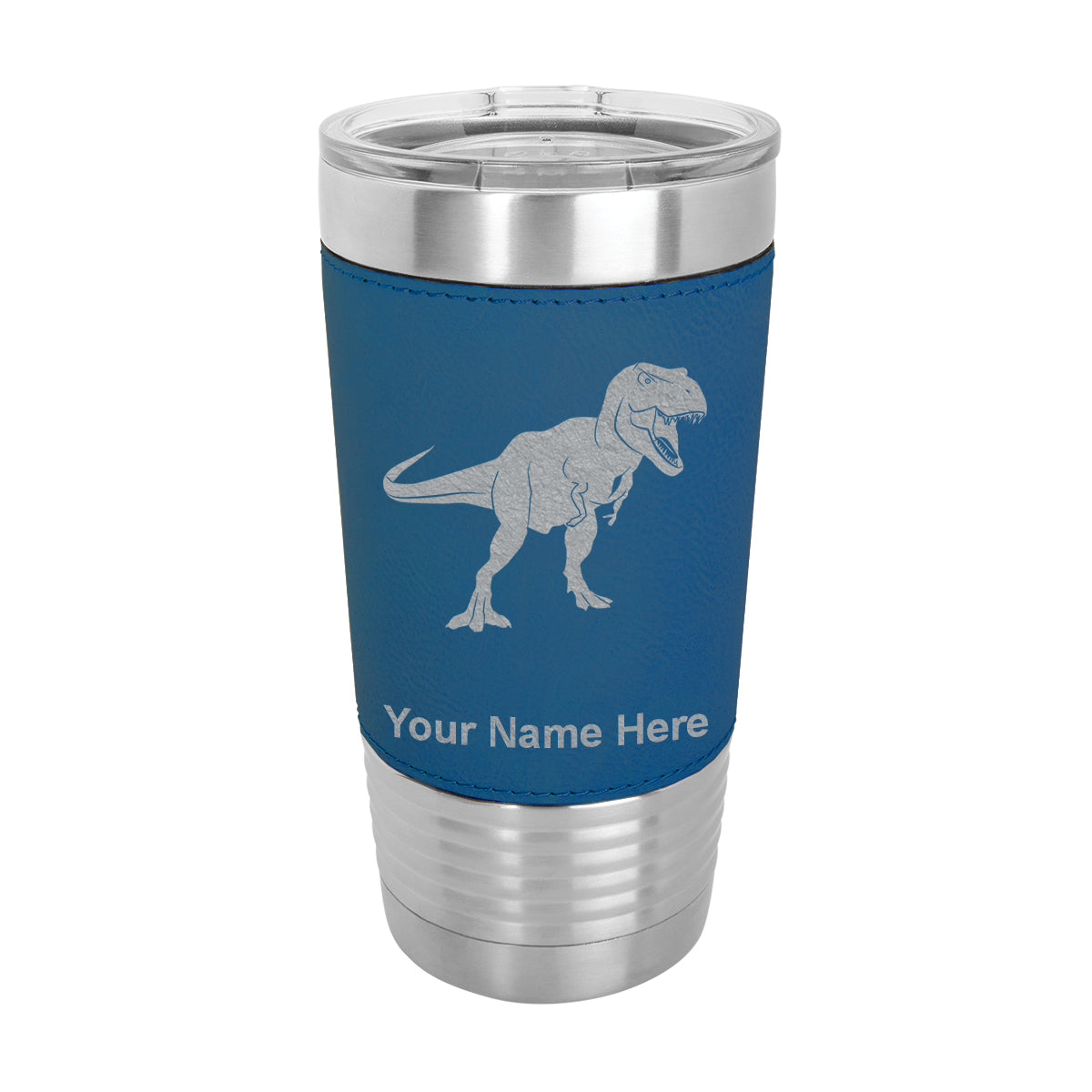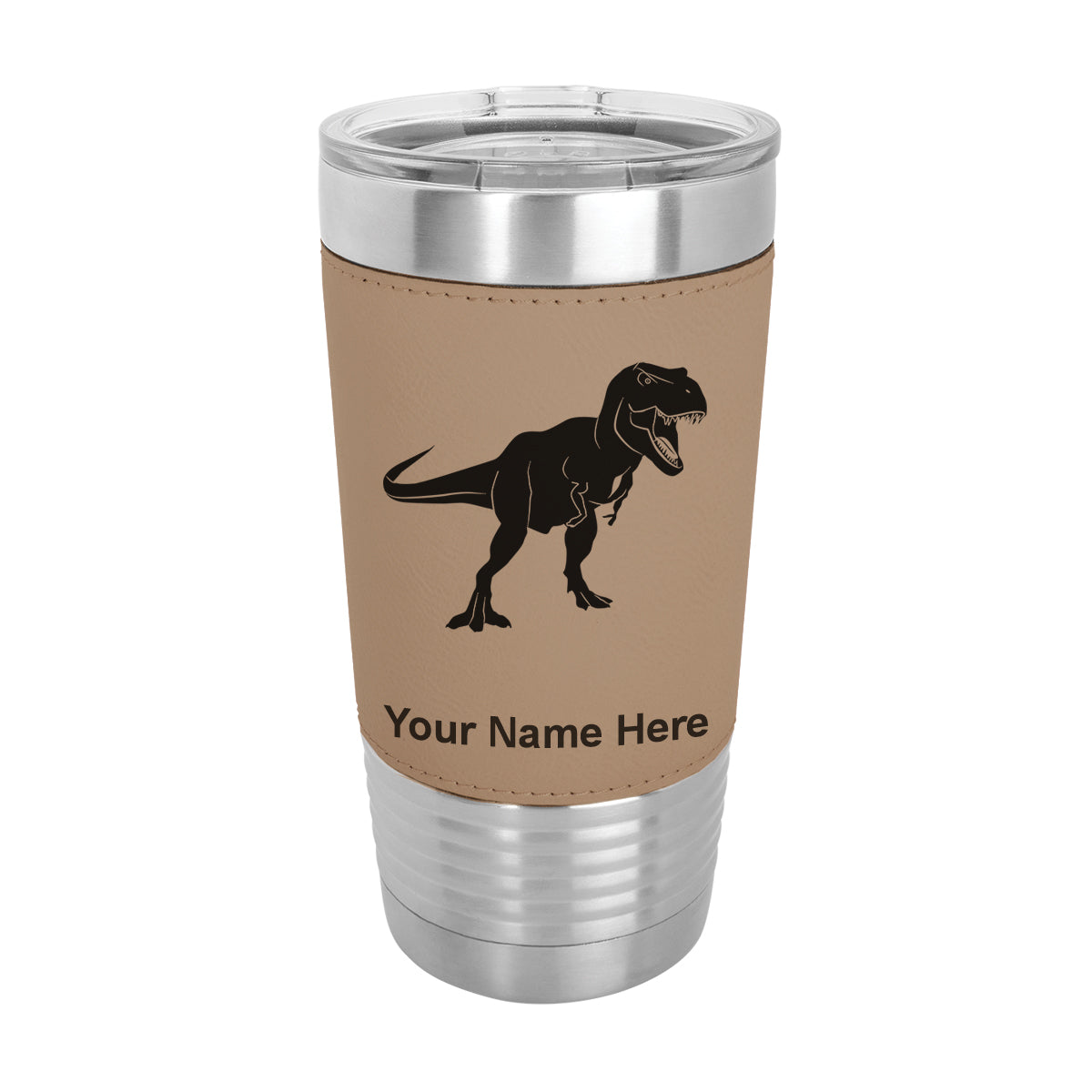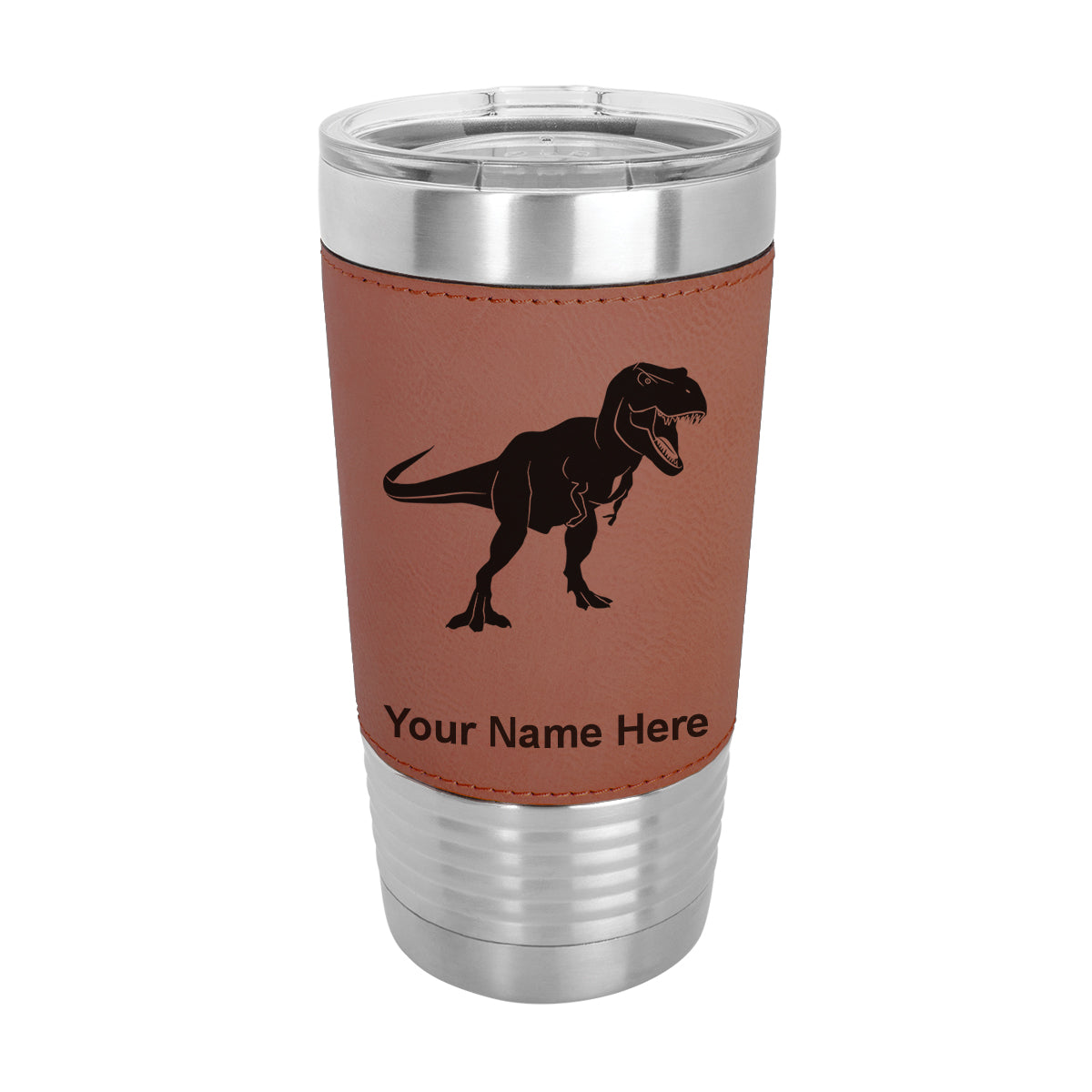 20oz Faux Leather Tumbler Mug, Tyrannosaurus Rex Dinosaur, Personalized Engraving Included