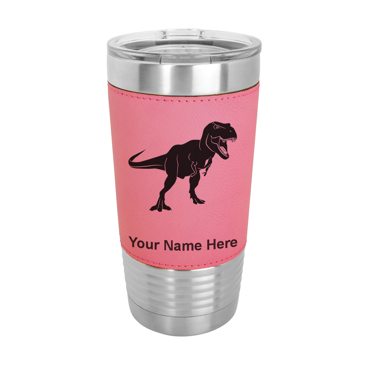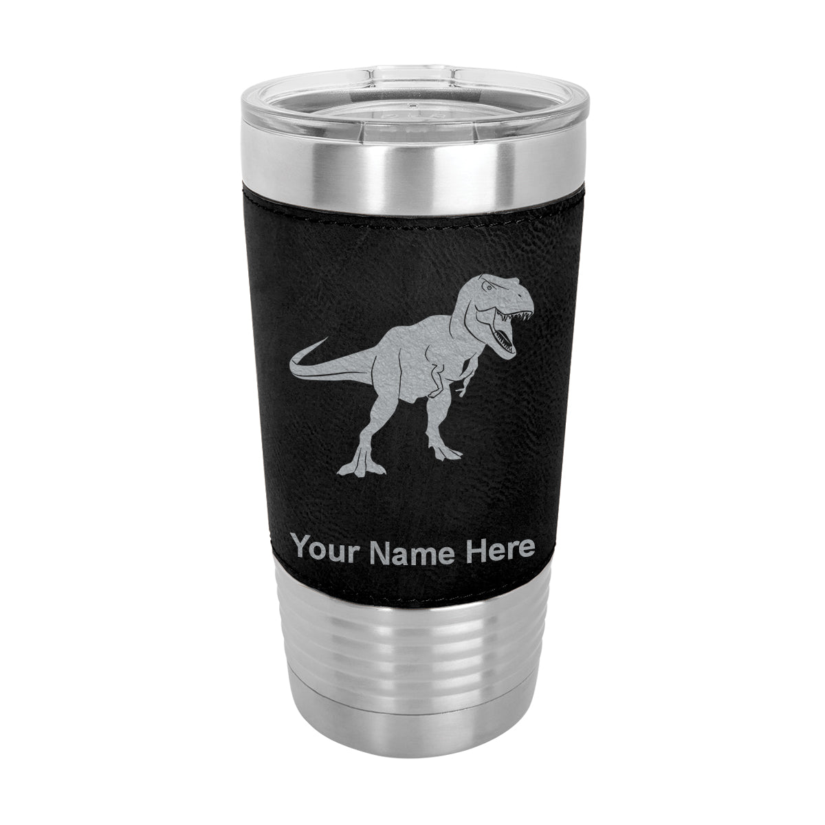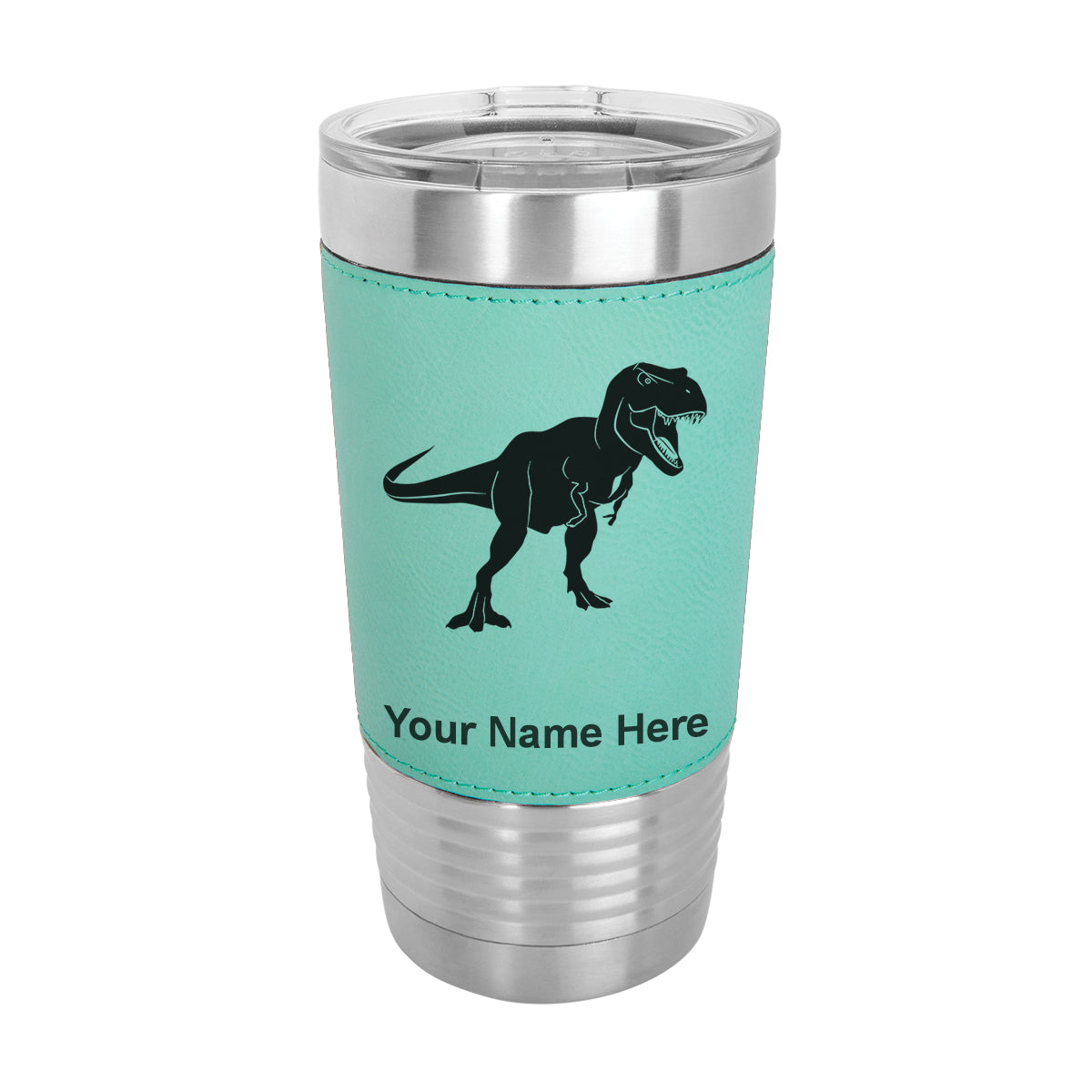 20oz Faux Leather Tumbler Mug, Tyrannosaurus Rex Dinosaur, Personalized Engraving Included