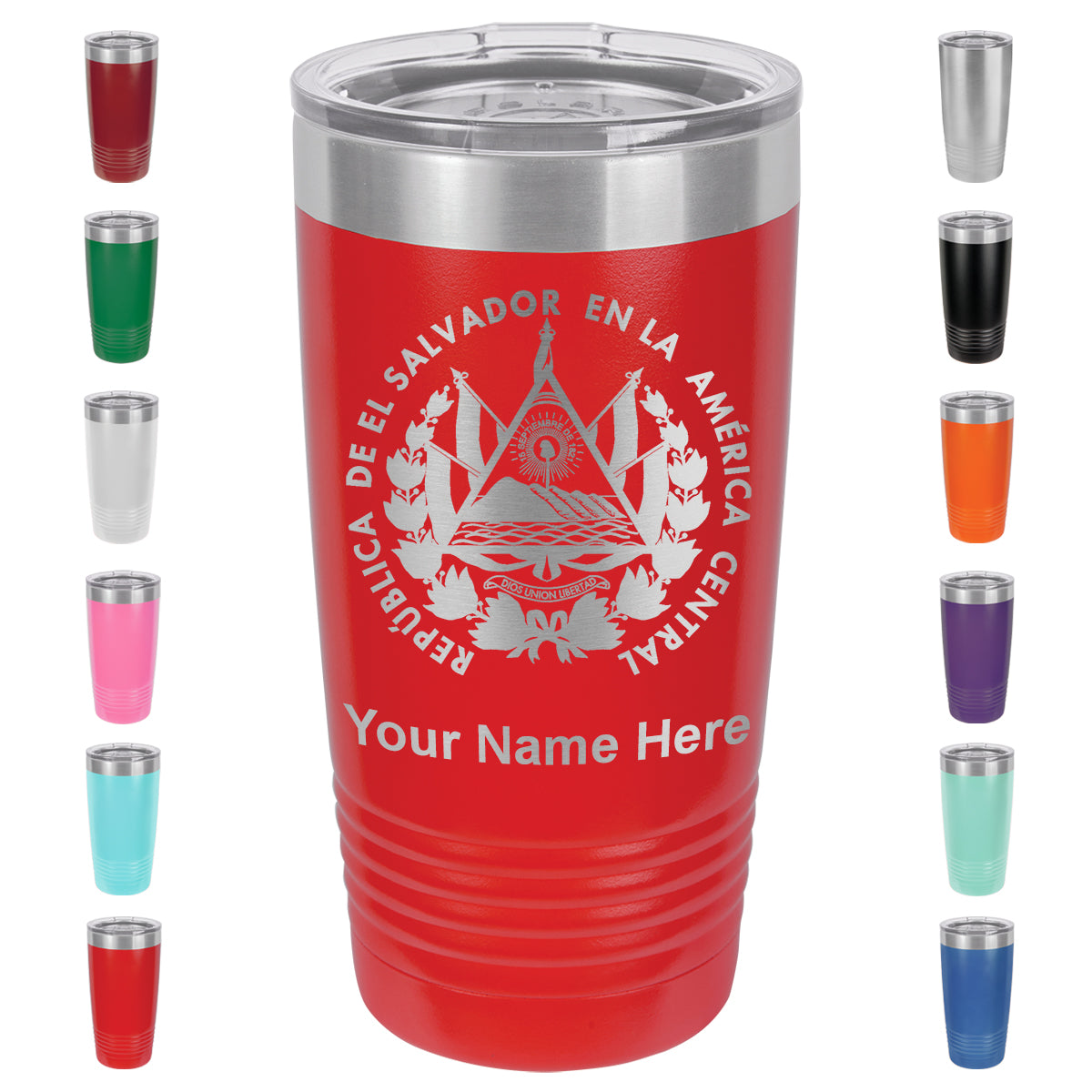 20oz Vacuum Insulated Tumbler Mug, Flag of El Salvador, Personalized Engraving Included