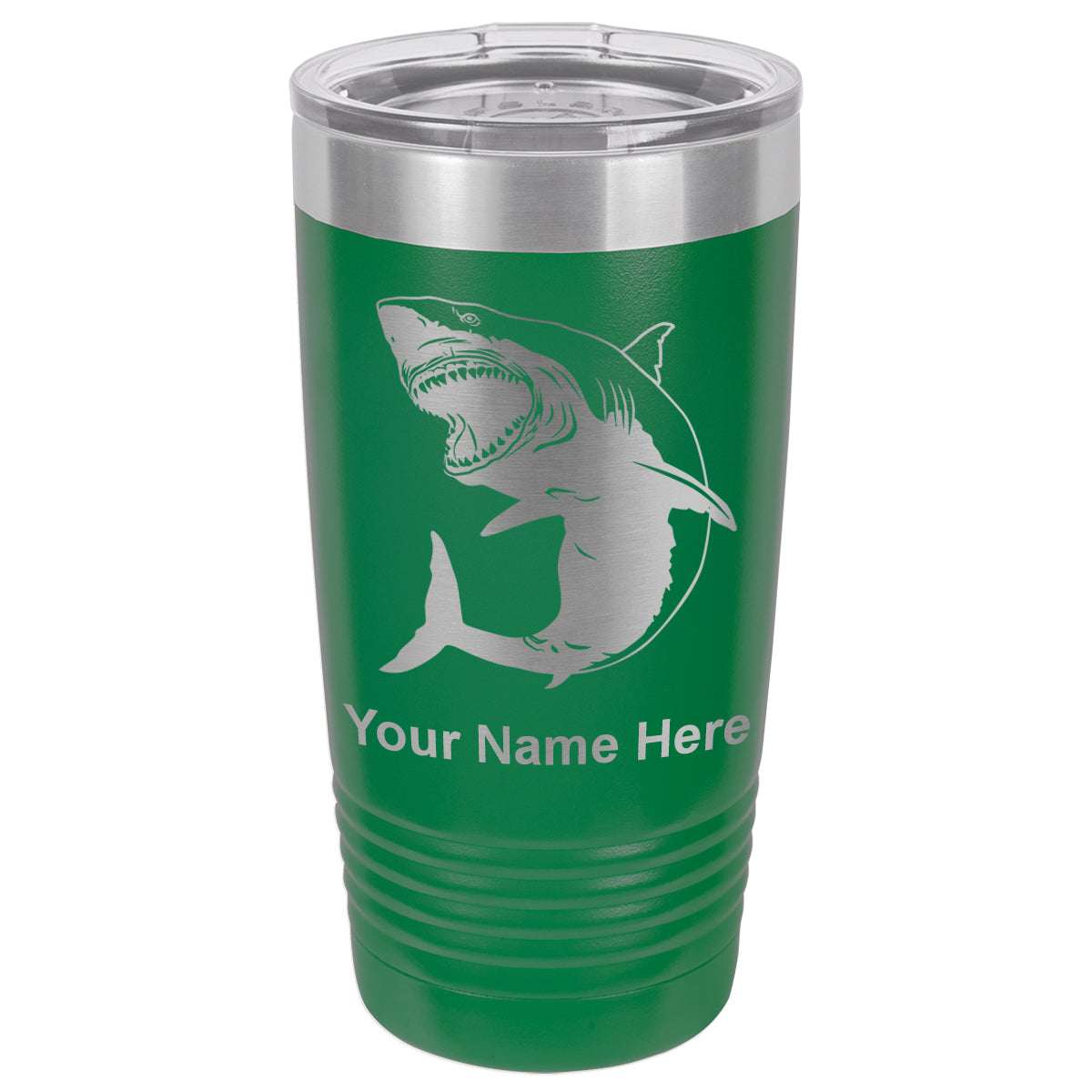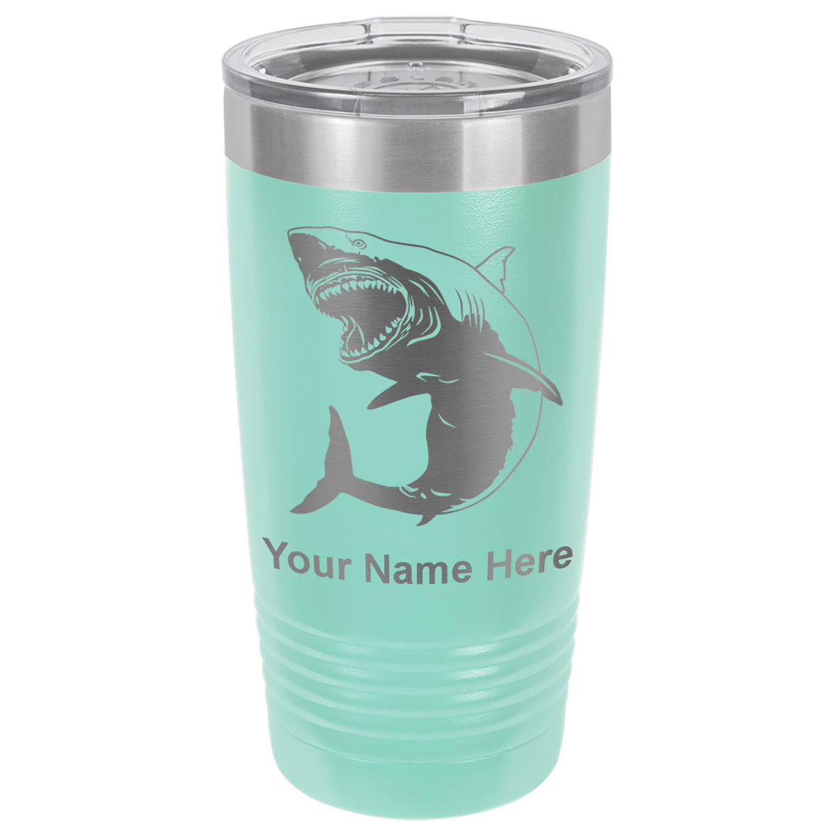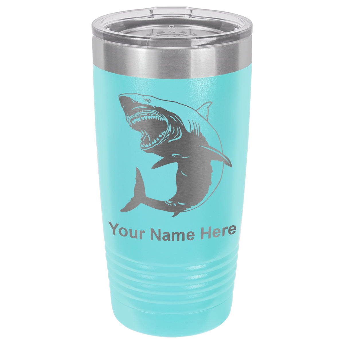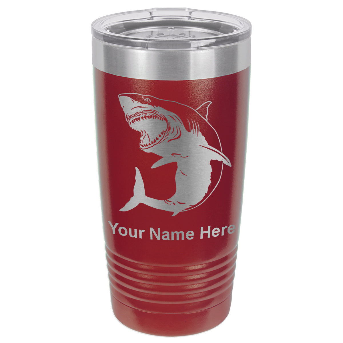 20oz Vacuum Insulated Tumbler Mug, Great White Shark, Personalized Engraving Included