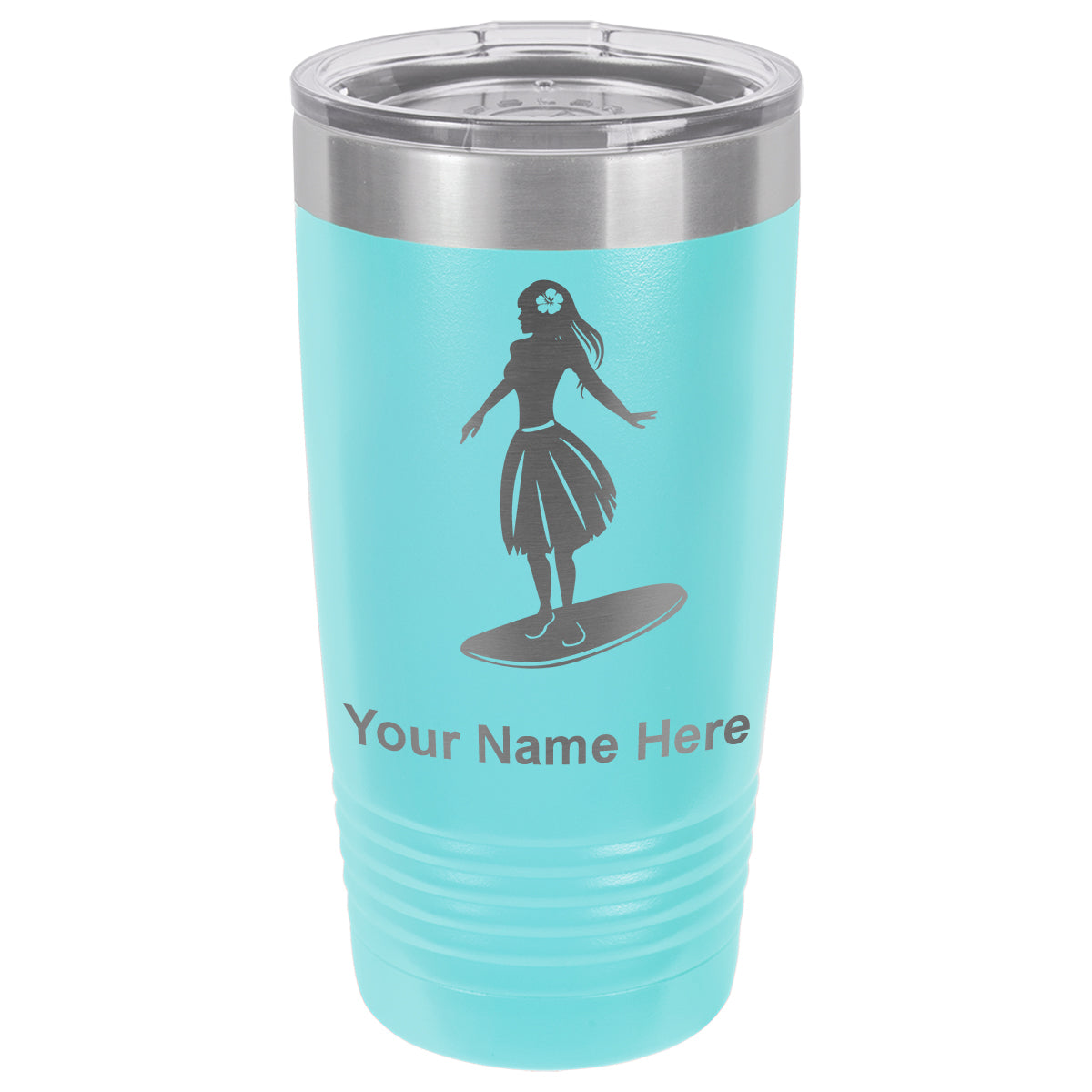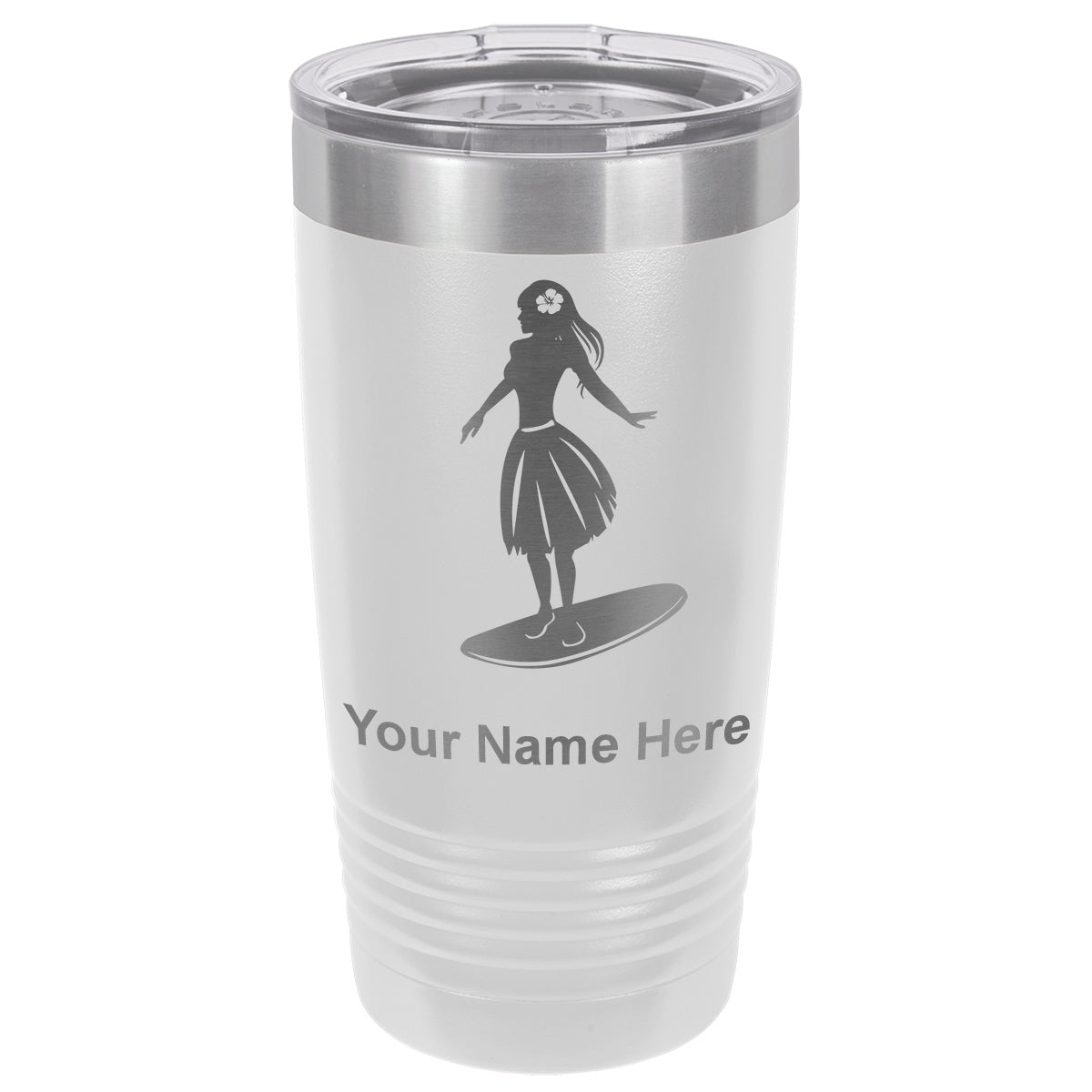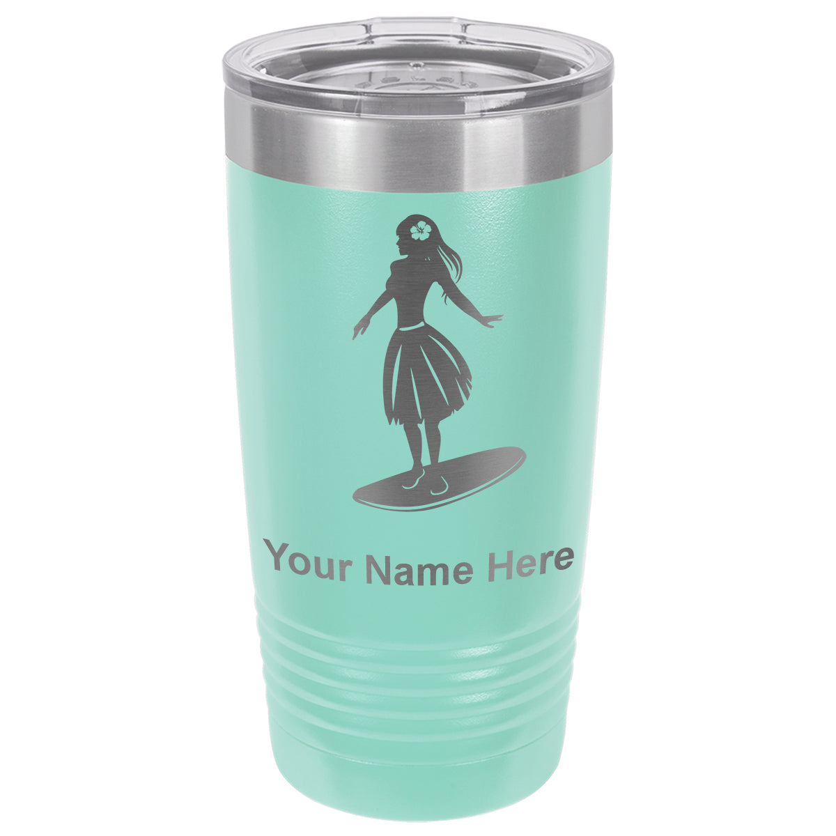 20oz Vacuum Insulated Tumbler Mug, Hawaiian Surfer Girl, Personalized Engraving Included