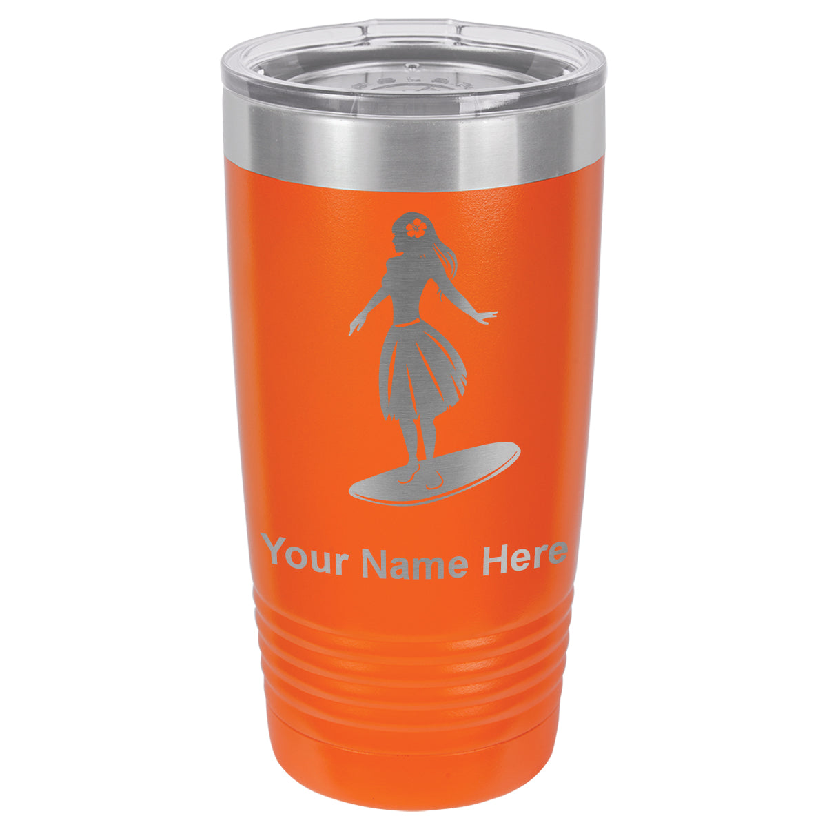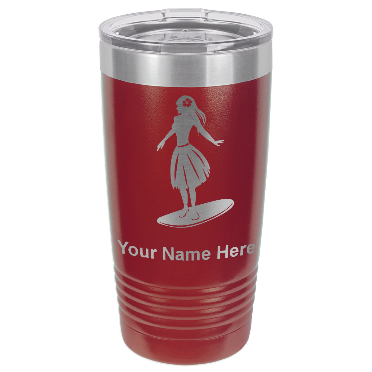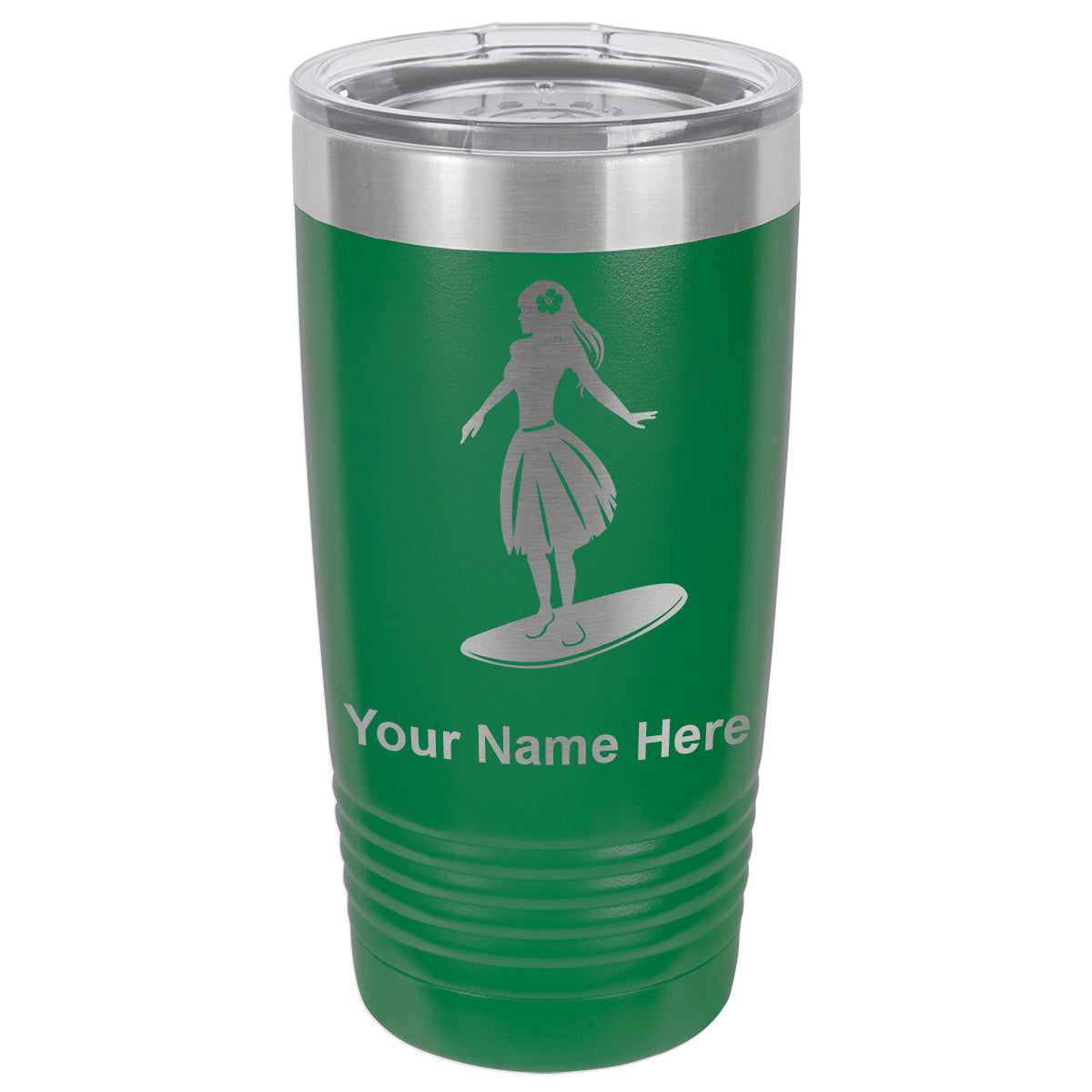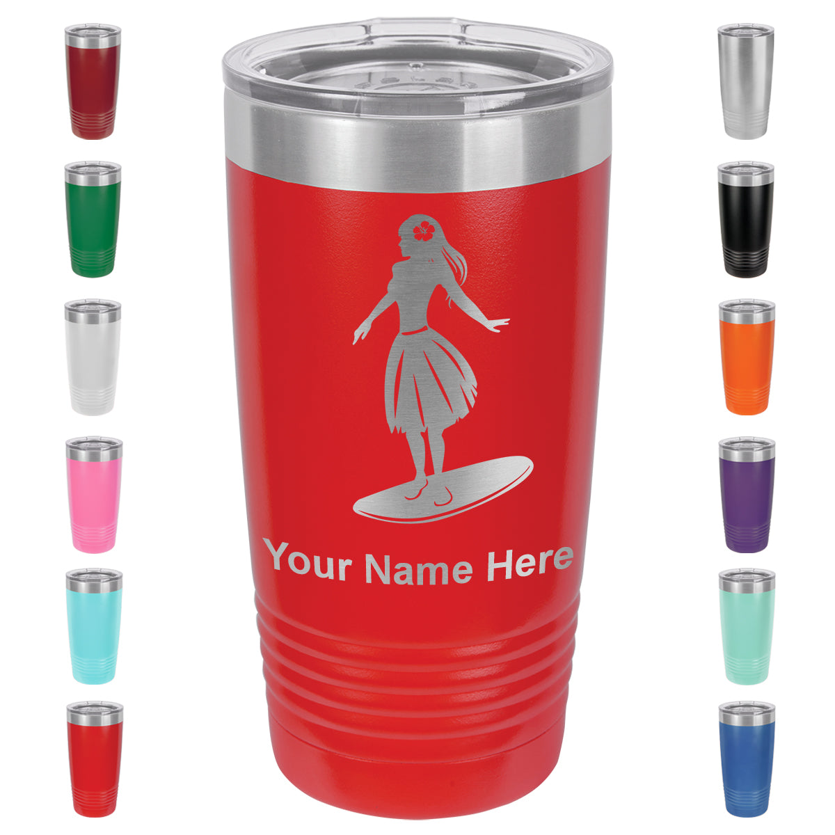 20oz Vacuum Insulated Tumbler Mug, Hawaiian Surfer Girl, Personalized Engraving Included