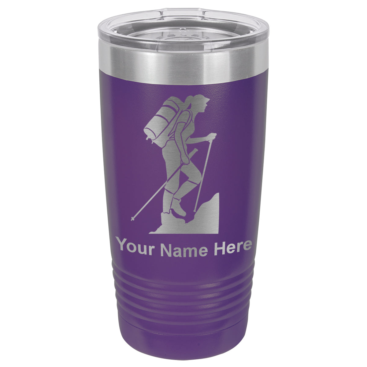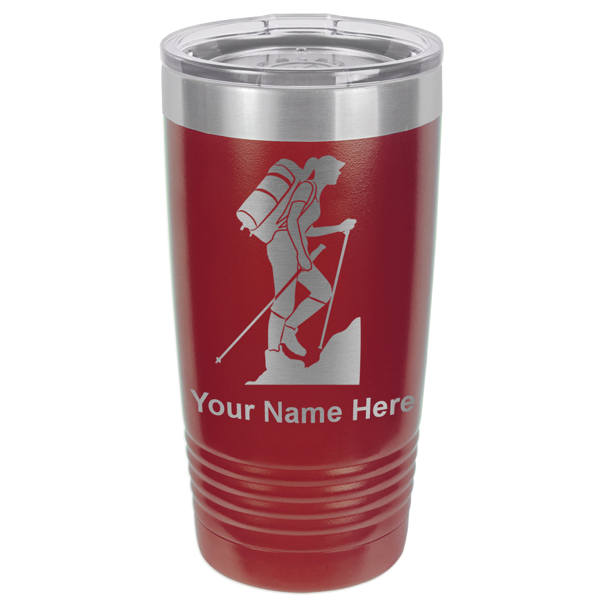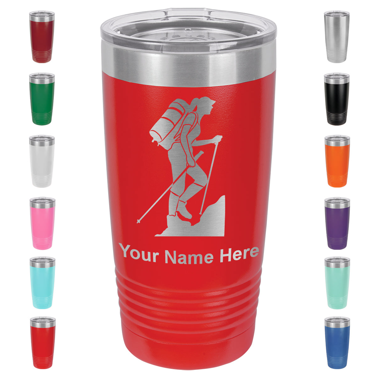 20oz Vacuum Insulated Tumbler Mug, Hiker Woman, Personalized Engraving Included