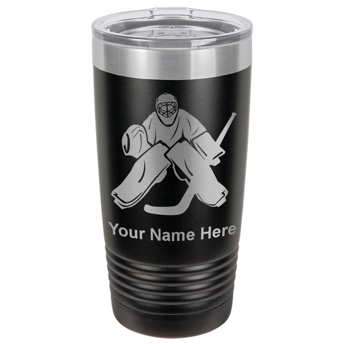 20oz Vacuum Insulated Tumbler Mug, Hockey Goalie, Personalized Engraving Included