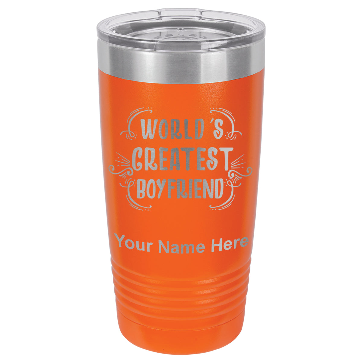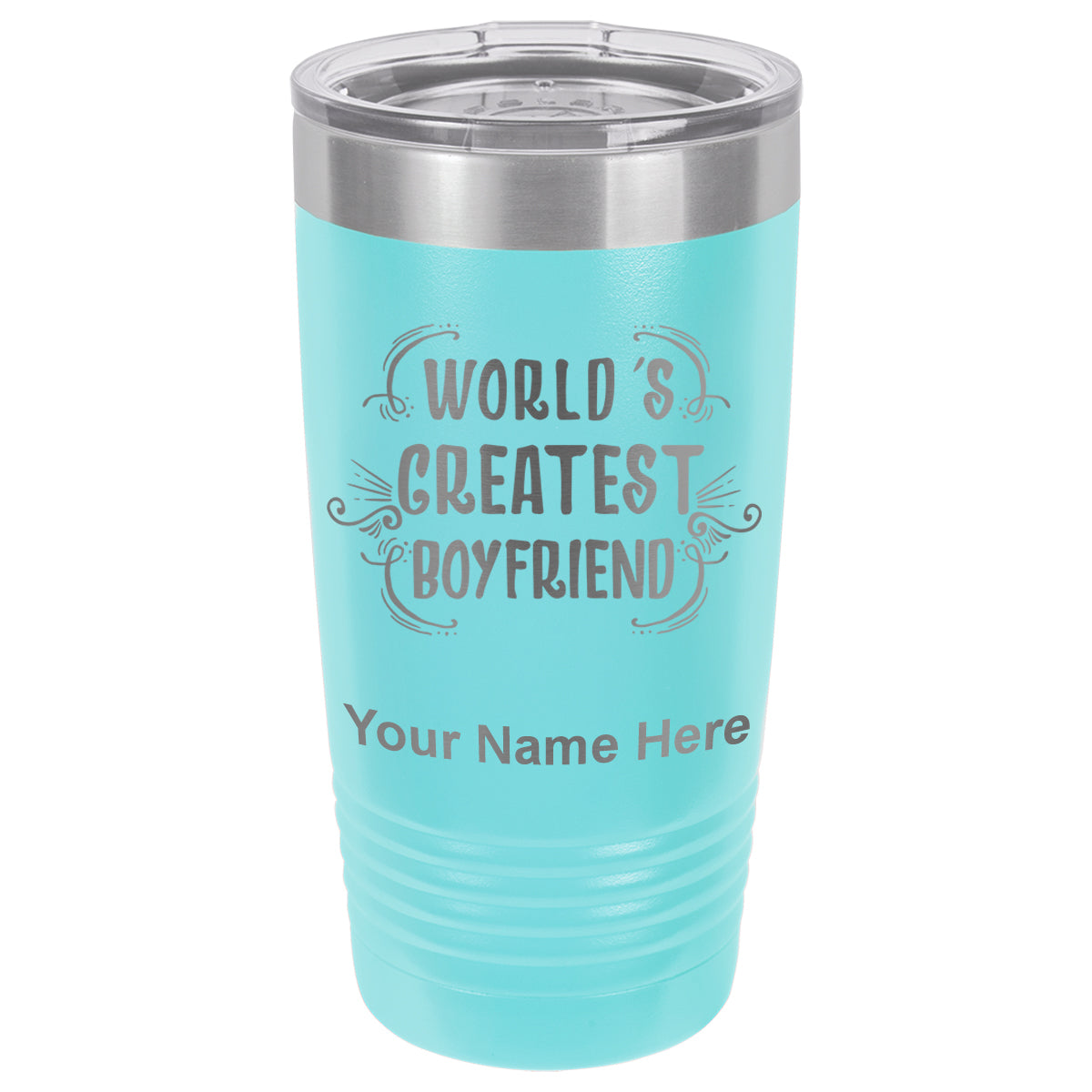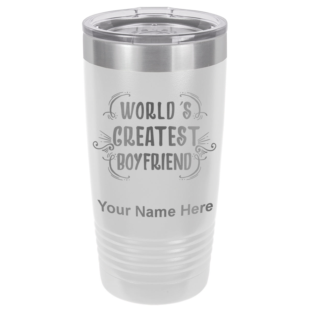 20oz Vacuum Insulated Tumbler Mug, World's Greatest Boyfriend, Personalized Engraving Included