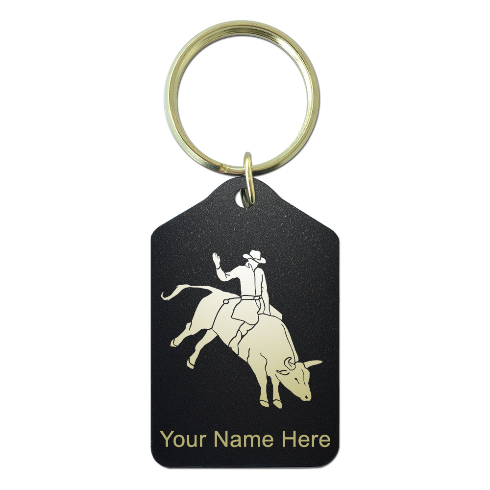 Black Metal Keychain, Bull Rider Cowboy, Personalized Engraving Included