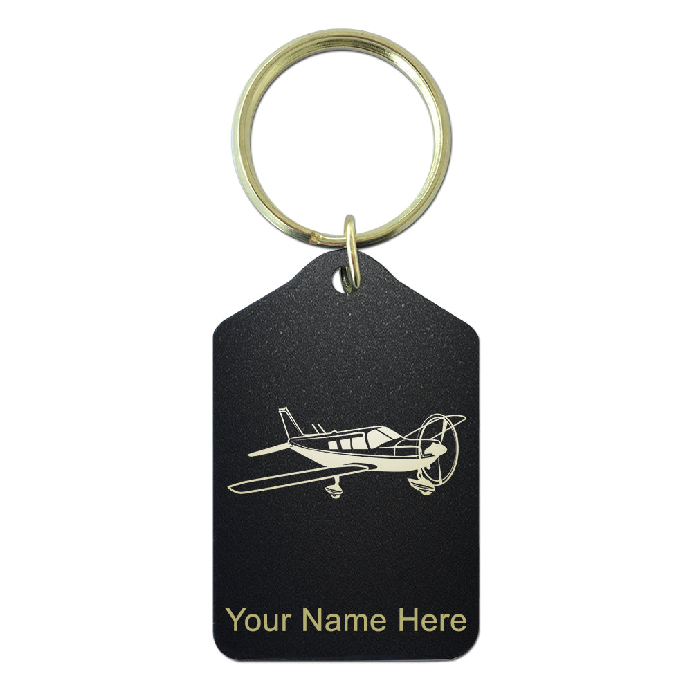 Black Metal Keychain, Low Wing Airplane, Personalized Engraving Included