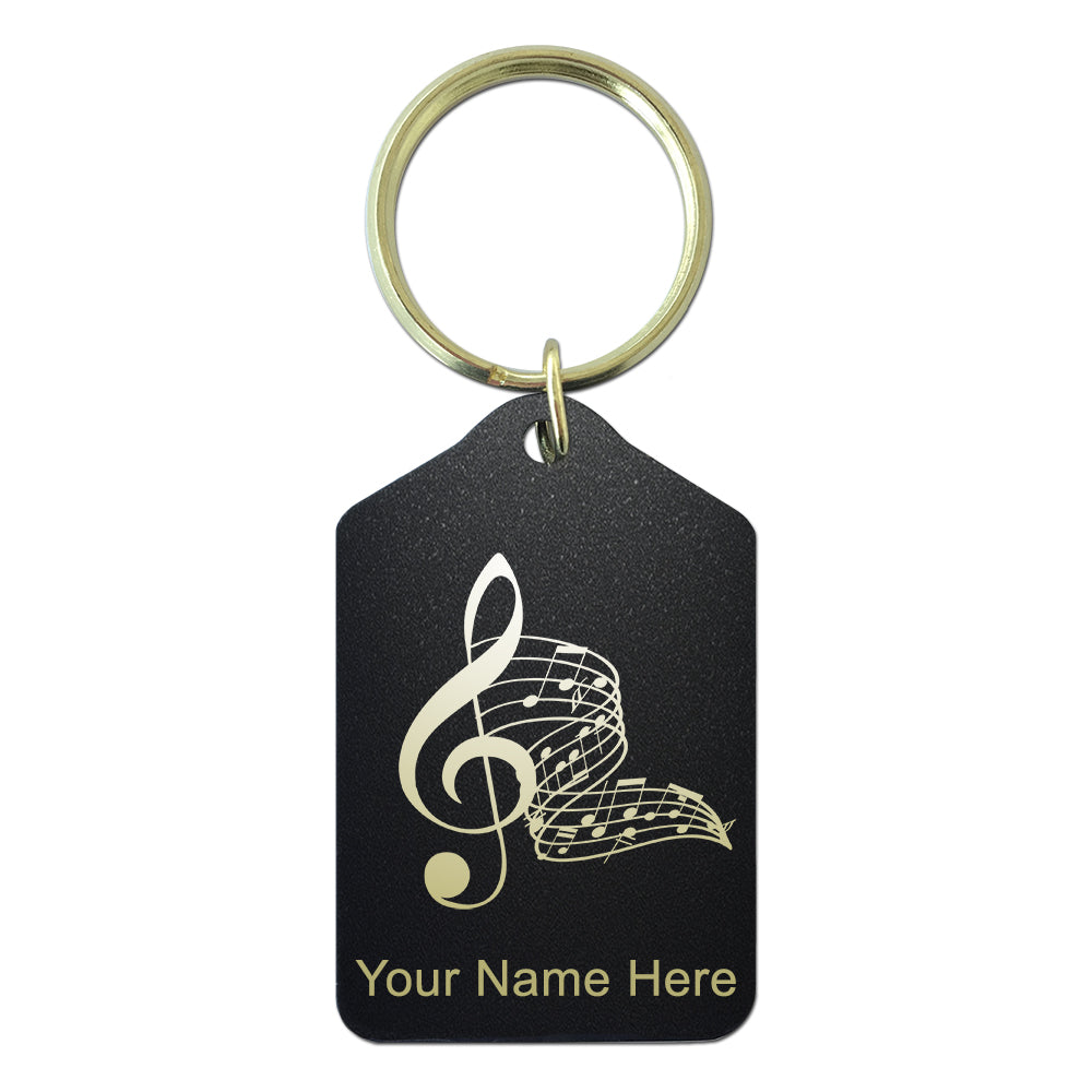 Black Metal Keychain, Musical Notes, Personalized Engraving Included