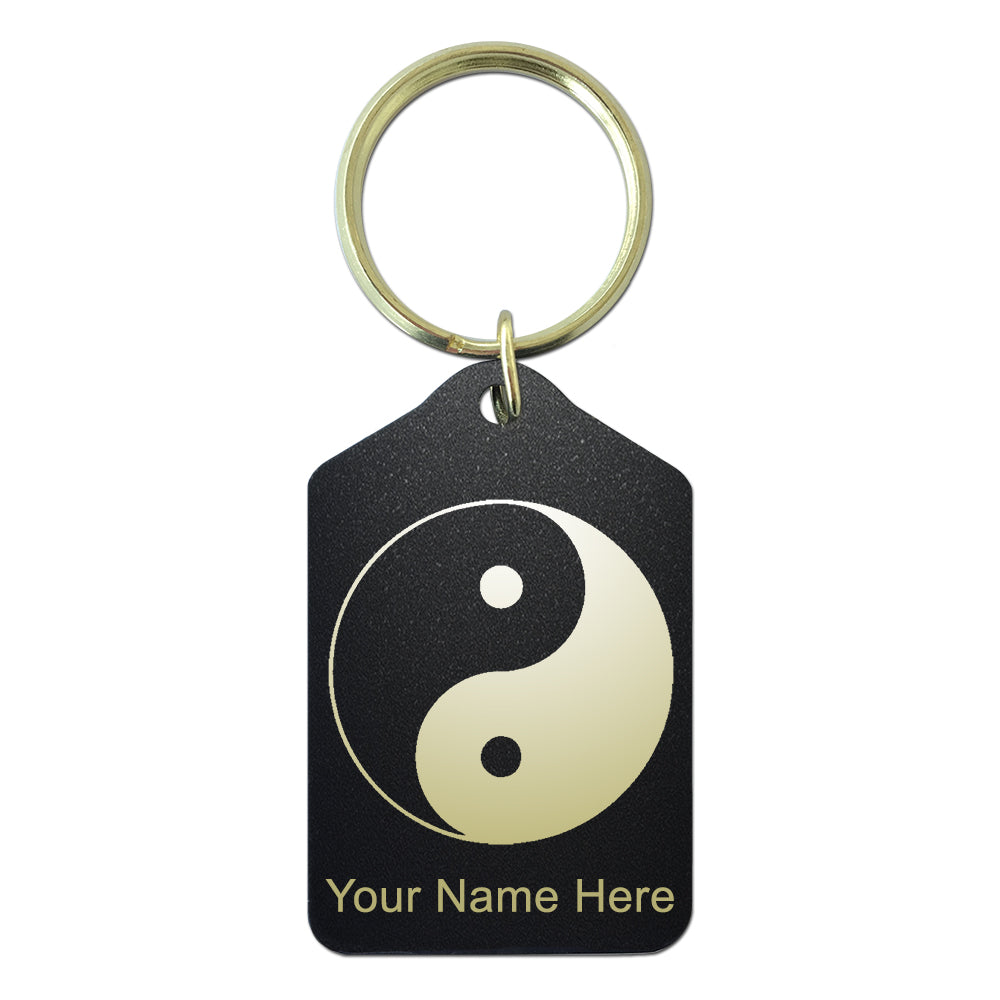 Black Metal Keychain, Yin Yang, Personalized Engraving Included
