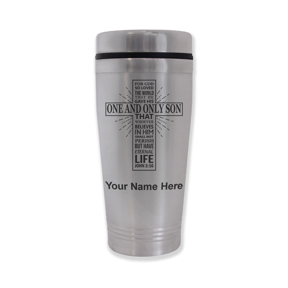 Commuter Travel Mug, Bible Verse John 3-16, Personalized Engraving Included