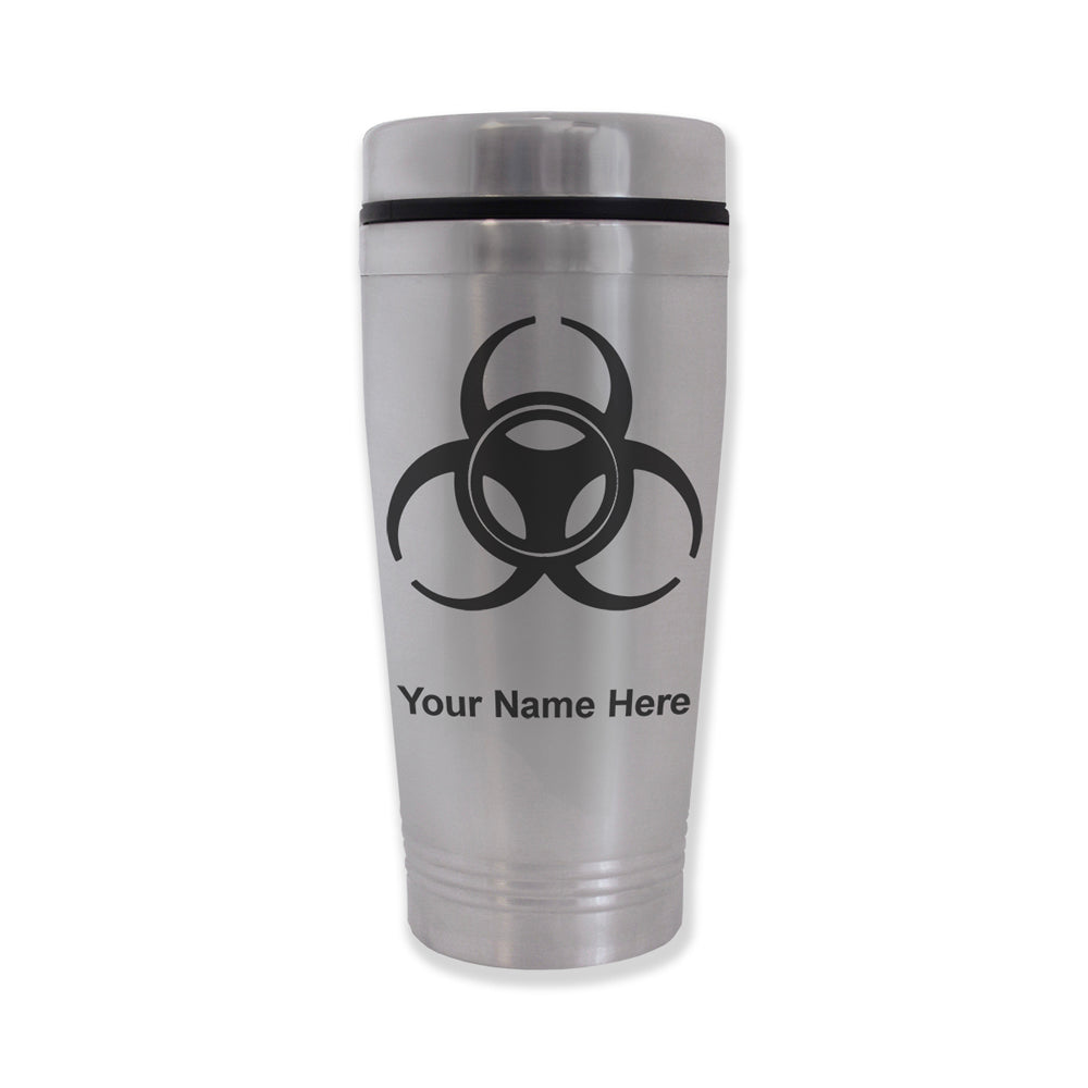 Commuter Travel Mug, Biohazard Symbol, Personalized Engraving Included