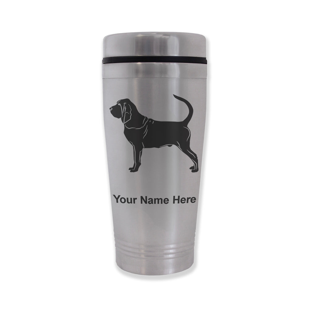 Commuter Travel Mug, Bloodhound Dog, Personalized Engraving Included
