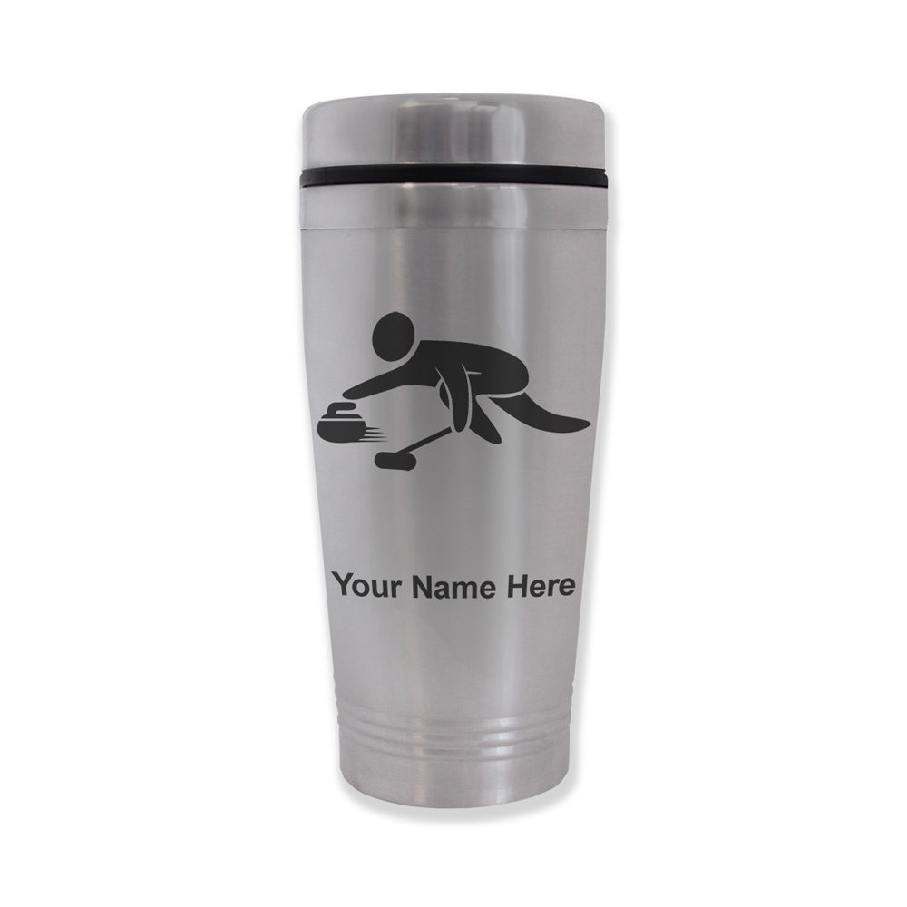Commuter Travel Mug, Curling Figure, Personalized Engraving Included